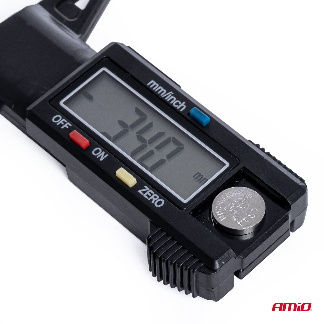 ΒΑΘΥΜΕΤΡΟ/ΜΕΤΡΗΤΗΣ ΠΕΛΜΑΤΟΣ ΕΛΑΣΤΙΚΩΝ ΨΗΦΙΑΚΟΣ ΜΕ ΜΠΑΤΑΡΙΑ ΑΜΙΟ - 1 ΤΕΜ. Βαθύμετρο - μετρητήε πέλματος ελαστικών ψηφιακός με μπαταρία, από την εταιρεία ΑΜΙΟ, πολωνικής προέλευσης. Ο μετρητής είναι πολύ εύκολος στη χρήση και μπορείτε να διαβάσετε το ακριβές αποτέλεσμα στην ψηφιακή οθόνη. Εύρος μέτρησης: 0 - 25,4 mm Ακρίβεια: 0,01 χλστ Τροφοδοσία: Μπαταρία LR44 SR44 Μονάδες μέτρησης: χιλιοστά [mm]. ίντσες [ίντσα] Θερμοκρασία λειτουργίας: 0 - 40 °C Συμπεριλαμβάνεται μπαταρία: ναι Μαύρο χρώμα Η ακρίβεια μέτρησης του μετρητή είναι έως και 0,01 mm. Το αποτέλεσμα της μέτρησης μπορεί να δοθεί ανάλογα με τις προτιμήσεις του χρήστη - σε χιλιοστά ή ίντσες. Το αποτέλεσμα της μέτρησης του βάθους του πέλματος δίνεται μαζί με τη μονάδα σε μια ψηφιακή ευανάγνωστη οθόνη. Χάρη στα κουμπιά γύρω από την οθόνη, η μέτρηση του βάθους του πέλματος είναι πολύ απλή, γιατί το μόνο που χρειάζεται να κάνετε είναι να τοποθετήσετε τη ράβδο μέτρησης στις αυλακώσεις του πέλματος και να πιέσετε ολόκληρη τη συσκευή στο ελαστικό. Το αποτέλεσμα που προκύπτει μπορεί να διαβαστεί εύκολα επειδή θα εμφανιστεί στην ψηφιακή οθόνη. Ο μετρητής λειτουργεί με μπαταρίες και ταιριάζει σε μπαταρίες SR44 ή LR44. Ο μετρητής απενεργοποιείται αυτόματα μετά από περίπου 5 λεπτά αδράνειας, εξοικονομώντας την μπαταρία. -ακρίβεια μέτρησης 0,01 mm. -ευρύ φάσμα μέτρησης 0-25,4 mm, κατάλληλο για ελαστικά επιβατικών αυτοκινήτων και φορτηγών. -ψηφιακή οθόνη, ευανάγνωστο αποτέλεσμα. -τροφοδοτείται από μπαταρία. -απενεργοποιείται αυτόματα μετά από 5 λεπτά αδράνειας, αποτρέποντας την ακούσια εκφόρτιση της μπαταρίας. -εύκολο στη χρήση, πολύχρωμα και υπογεγραμμένα τρία κουμπιά γύρω από την οθόνη. -ευρύ φάσμα εφαρμογών, που προορίζονται για τη μέτρηση ελαστικών επιβατικών αυτοκινήτων, φορτηγών και μοτοσικλετών. Συσκευασία 1 τεμαχίου