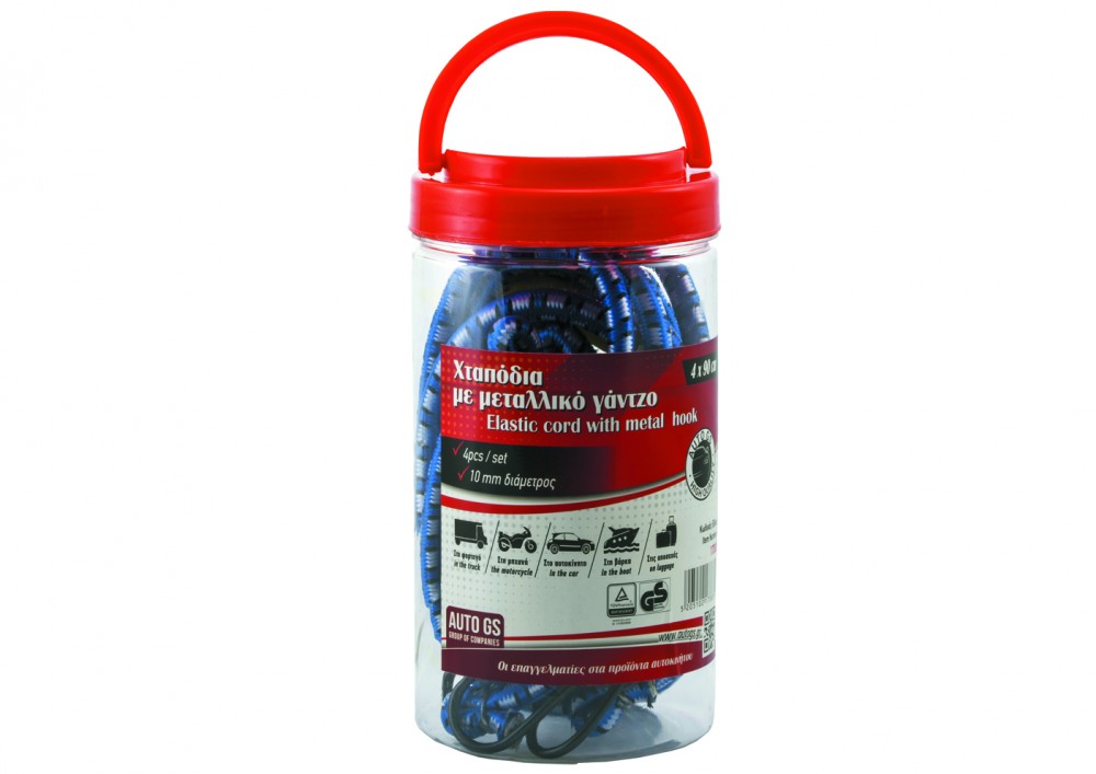 Χταπόδια Πρόσδεσης Ελαστικά Με Μεταλλικό Γάντζο 10mm X 90cm Σετ 4 Τεμάχια