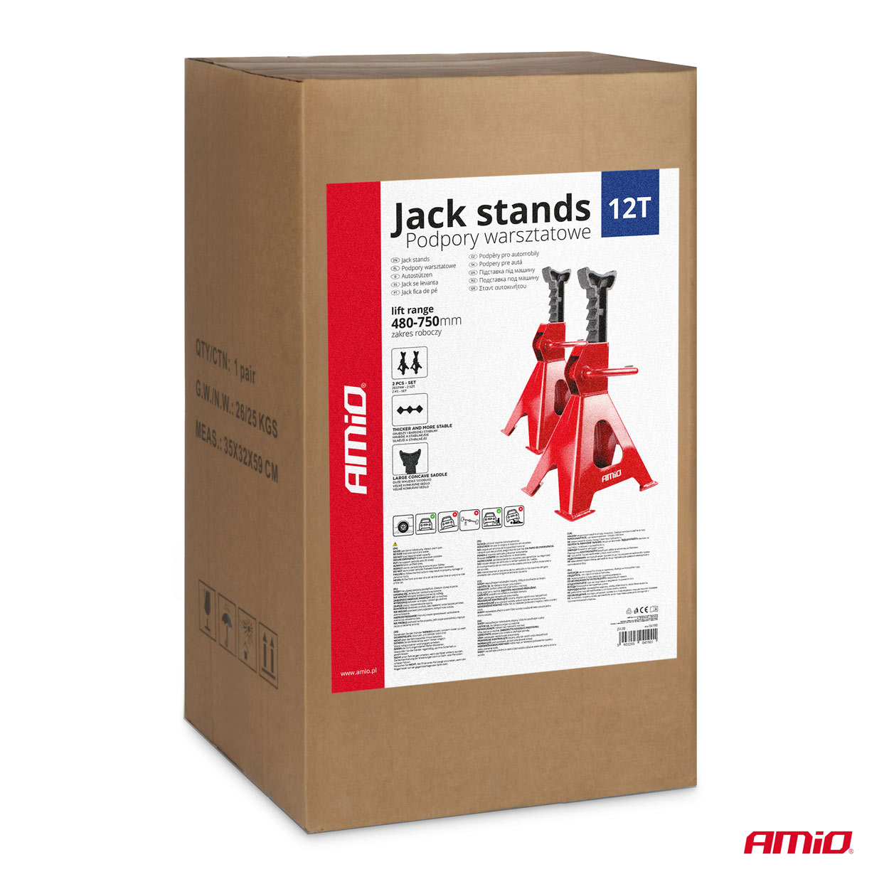 ΣΤΡΙΠΟΔΑ 12 ΤΟΝΩΝ (12.000kg) ΑΝΥΨΩΣΗ: 480-750mm ΑΜΙΟ - 2 ΤΕΜ. Στρίποδα από την εταιρεία ΑΜΙΟ, πολωνικής προέλευσης. -Ανυψωτική ικανότητα: 12 τόνοι (ανά σετ). -Υλικό: Υψηλής ποιότητας, ανθεκτικό μέταλλο, ανθεκτικό στη διάβρωση. -Αναδιπλούμενος σχεδιασμός: Εύκολη αποθήκευση και μεταφορά. -Ρυθμιζόμενο ύψος (480-750mm). -Universal: Κατάλληλο για επιβατικά αυτοκίνητα, SUV, μοτοσυκλέτες και άλλα οχήματα κατάλληλου βάρους Συσκευασία 2 τεμαχίων