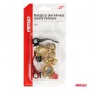 ΠΟΛΟΙ ΜΠΑΤΑΡΙΑΣ / ΑΚΡΟΔΕΚΤΕΣ 12V 40A ΜΕ ΣΦΙΓΚΤΗΡΕΣ & ΚΛΕΙΔΙ AMIO - 3 ΤΕΜ. Universal χρήση – ταιριάζει στις περισσότερες μπαταρίες αυτοκινήτου. Quick Connector – επιτρέπει τη γρήγορη και εύκολη σύνδεση και αποσύνδεση της μπαταρίας χωρίς την ανάγκη εργαλείων. Συμπαγής ορειχάλκινη κατασκευή – κατασκευασμένη από ανθεκτικά, ανθεκτικά στη διάβρωση υλικά για μακροχρόνια, αξιόπιστη απόδοση. Συμπεριλαμβάνεται κλειδί εγκατάστασης – εξασφαλίζει πλήρη άνεση κατά την εγκατάσταση. Συσκευασία 3 τεμαχίων