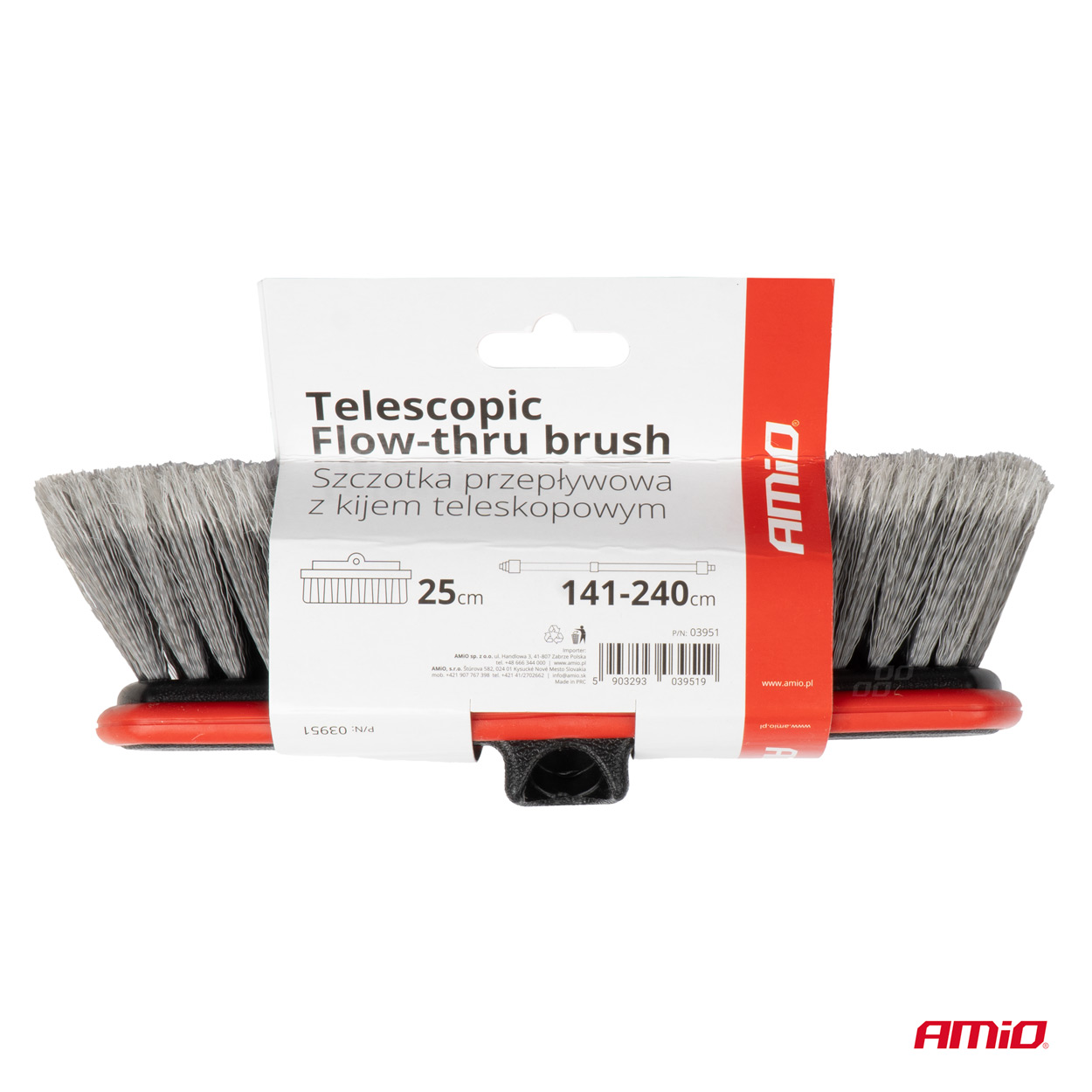 ΒΟΥΡΤΣΑ ΠΛΥΣΙΜΑΤΟΣ ΜΕ ΤΗΛΕΣΚΟΠΙΚΟ ΚΟΝΤΑΡΙ 141-240cm & ΑΝΤΑΠΤΟΡΑ ΓΙΑ ΠΑΡΟΧΗ ΝΕΡΟΥ​ ΑMiO - 1 TEM. Βούρτσα πλυσίματος με τηλεσκοπικό κοντάρι και αντάπτορα για παροχή νερού, από την εταιρεία ΑMiO, πολωνικής προέλευσης. -Διαστάσεις : 114 - 240 cm Η τηλεσκοπική βούρτσα είναι ένα ιδανικό εργαλείο για τον καθαρισμό των εξωτερικών επιφανειών των οχημάτων και άλλων στοιχείων όπως τα φωτοβολταϊκά πάνελ. Ο μοναδικός σχεδιασμός του σας επιτρέπει να προσαρμόσετε το μήκος, επιτρέποντάς σας να φτάσετε ακόμη και σε όλα τα δυσπρόσιτα σημεία. Εξοπλισμένο με μαλακές τρίχες, αφαιρεί απαλά τη βρωμιά και τους ρύπους χωρίς να κινδυνεύει να γρατσουνίσει την επιφάνεια. Χάρη στη χρήση ροής νερού, επιτρέπει αποτελεσματικό ξέπλυμα και απομάκρυνση της βρωμιάς και διευκολύνει σημαντικά την εργασία. -Υλικό: αλουμίνιο. -Μέγιστο μήκος όταν ξεδιπλώνεται: 240 cm. -Μεγάλη και άνετη βούρτσα με τηλεσκοπική λαβή αλουμινίου. -Γρήγορη σύζευξη με βαλβίδα για τη σύνδεση του εύκαμπτου σωλήνα. -Ελαφρύ και εξαιρετικά άκαμπτο - ακόμα και όταν ξεδιπλώνεται στο μέγιστο ύψος. -Πυκνές τρίχες από μαλακές ίνες. -Πλάτος πινέλου: 25,4 cm. -Ύψος τρίχας: περίπου 6 cm. Συσκευασία 1 τεμαχίου