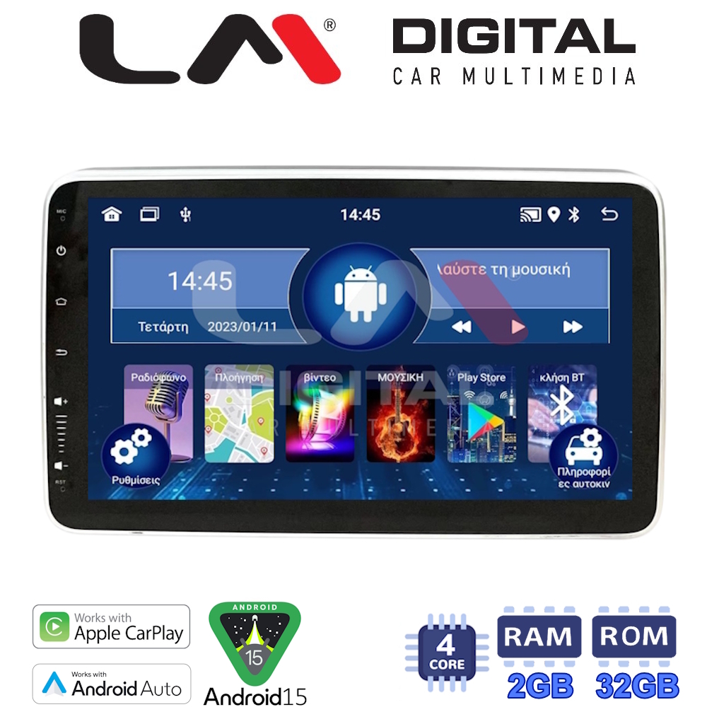 1din 9 inc Android 15 με 4 πύρηνο επεξεργαστή 2GB RAM και 32GB ROM CPAA