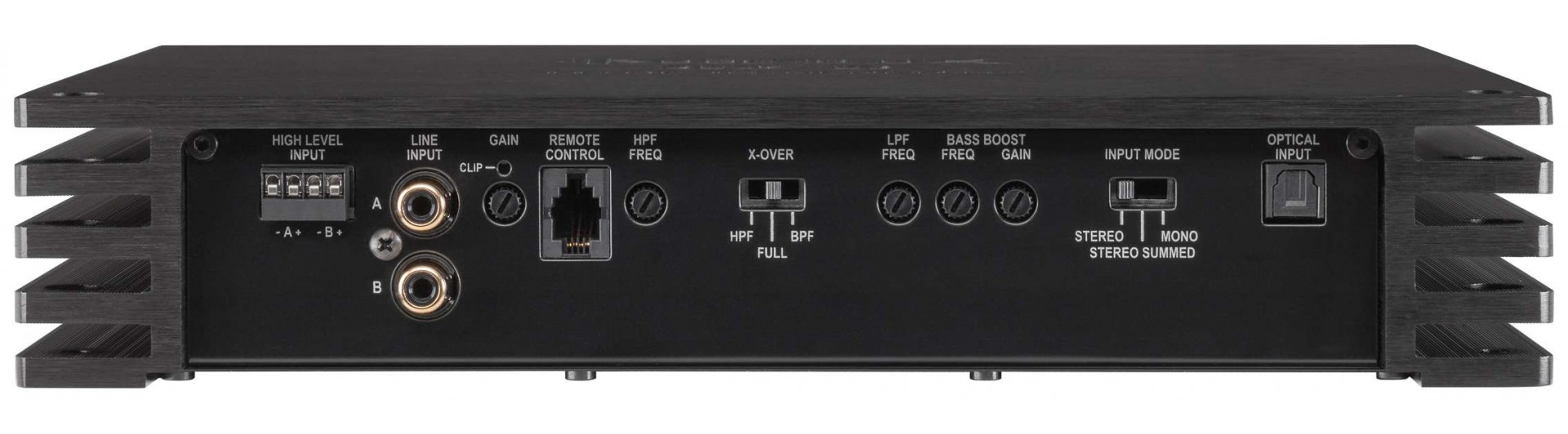 | Additional features | Active, adjustable crossover, bass boost, input mode switch, highlevel input with Advanced Diagnostics Error Protection (ADEP), Auto Remote switch, SPDIF Direct In switch, cable remote control for volume adjustment |