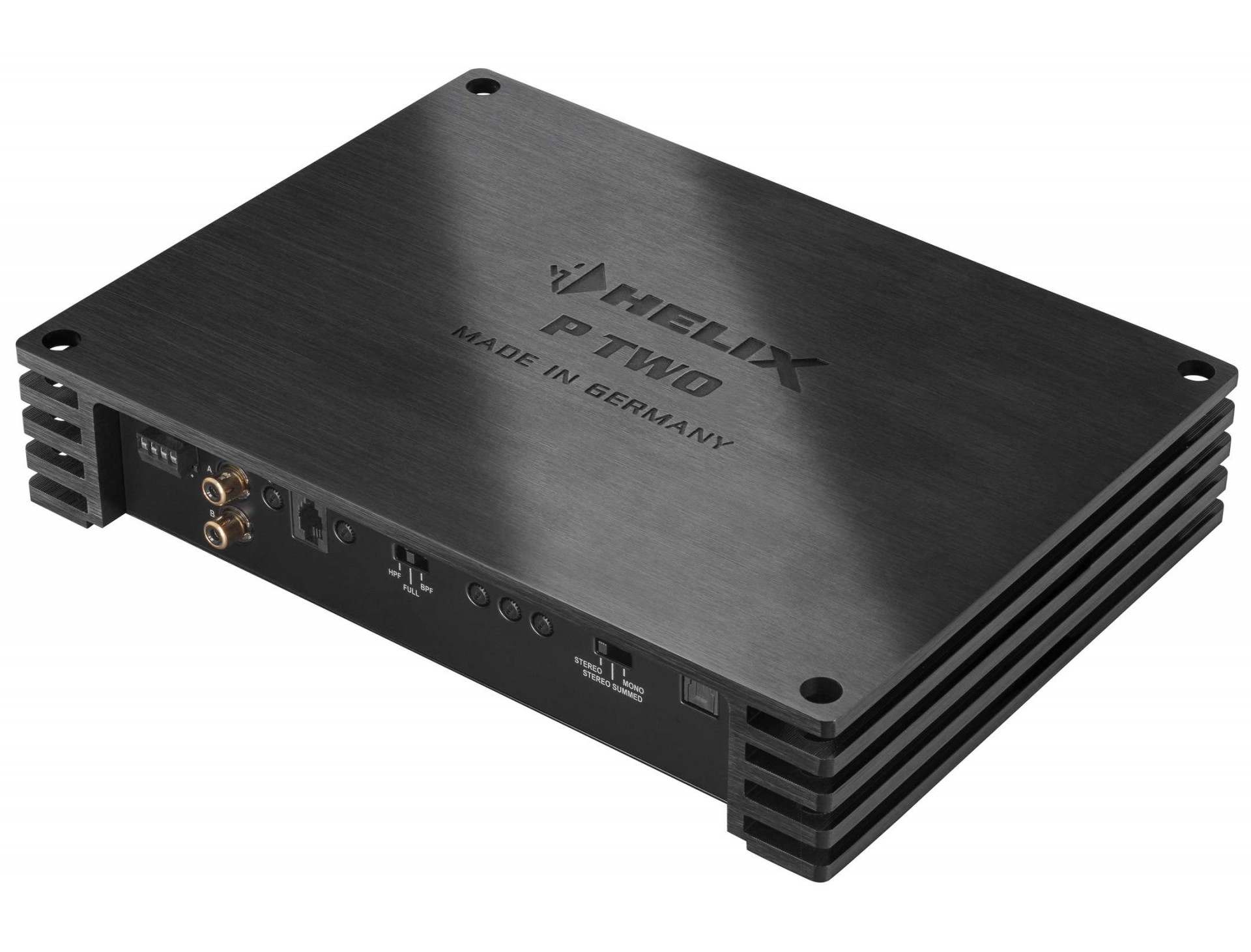 Απίστευτη δύναμη και ευαισθησία - ο νέος P TWO συνδυάζει δύο ταλέντα με έναν απόλυτα μοναδικό τρόπο. Λόγω της ισχύος εξόδου RMS των 2 x 490 Watt σε 2Ω, αυτός ο συμπαγής ενισχυτής είναι σε θέση να οδηγήσει ακόμη και ισχυρά υπογούφερ στο μέγιστο. Ο τεχνικός σχεδιασμός προορίζεται κυριολεκτικά για όλα τα διπλοπηνικά γούφερ 2 x 2 Ohms όπως τα νέα υπογούφερ HELIX Q.