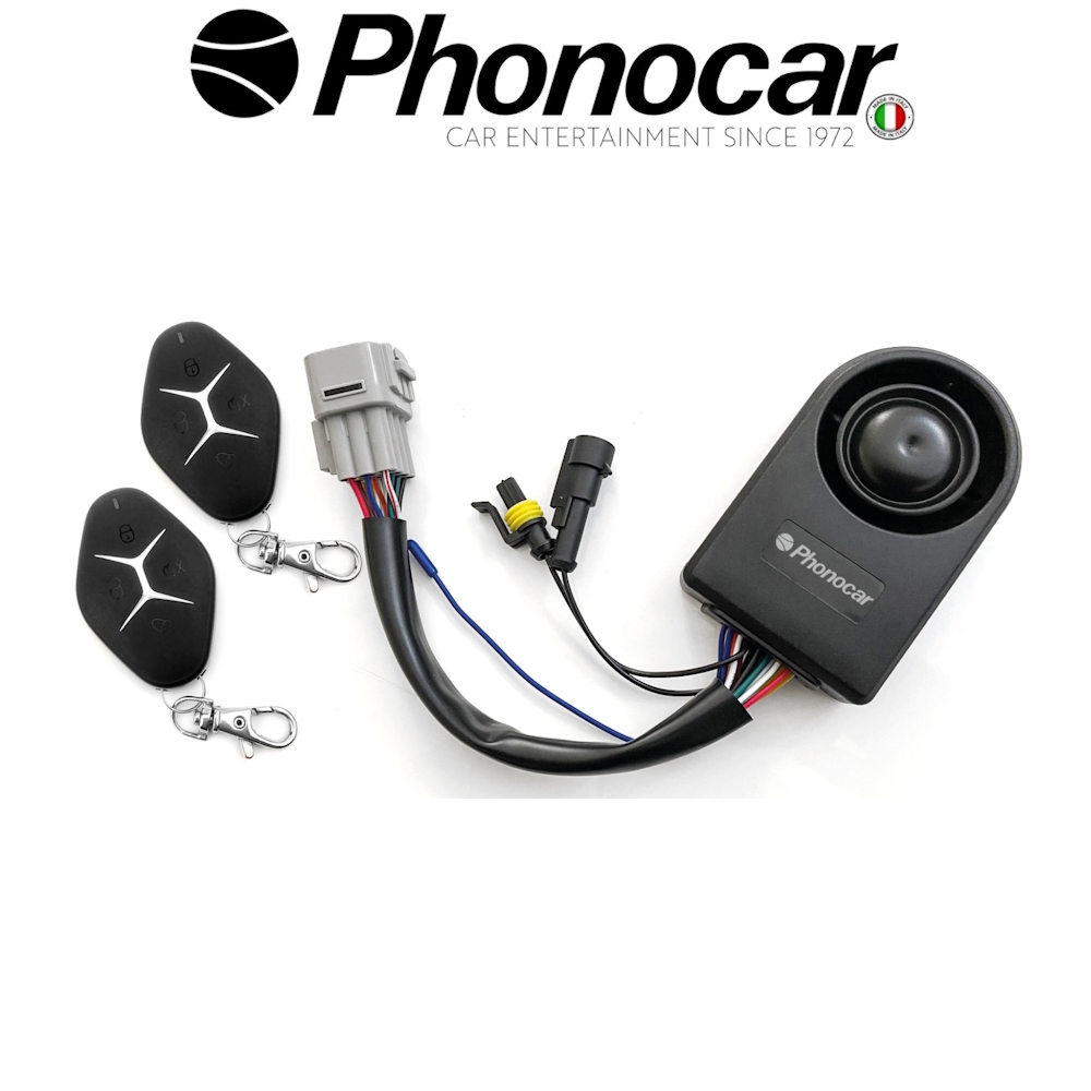 - Σύστημα συναγερμού γενικής χρήσης για μοτοσικλέτες και σκούτερ με όλες τις λειτουργίες ασφαλείας για την αποφυγή κλοπής οχήματος και την προστασία του οδηγού: