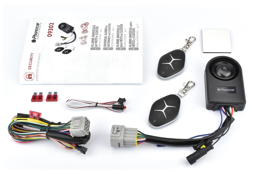 - Σύστημα συναγερμού γενικής χρήσης για μοτοσικλέτες και σκούτερ με όλες τις λειτουργίες ασφαλείας για την αποφυγή κλοπής οχήματος και την προστασία του οδηγού: