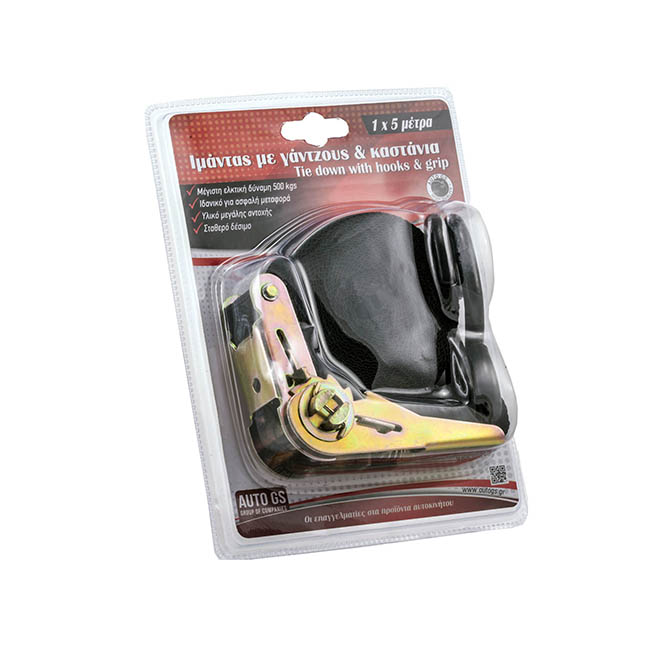 Ιμάντας Πρόσδεσης Με Καστάνια Και Γάντζους 2.5cm X 5 Μέτρα 1 Τεμάχιο