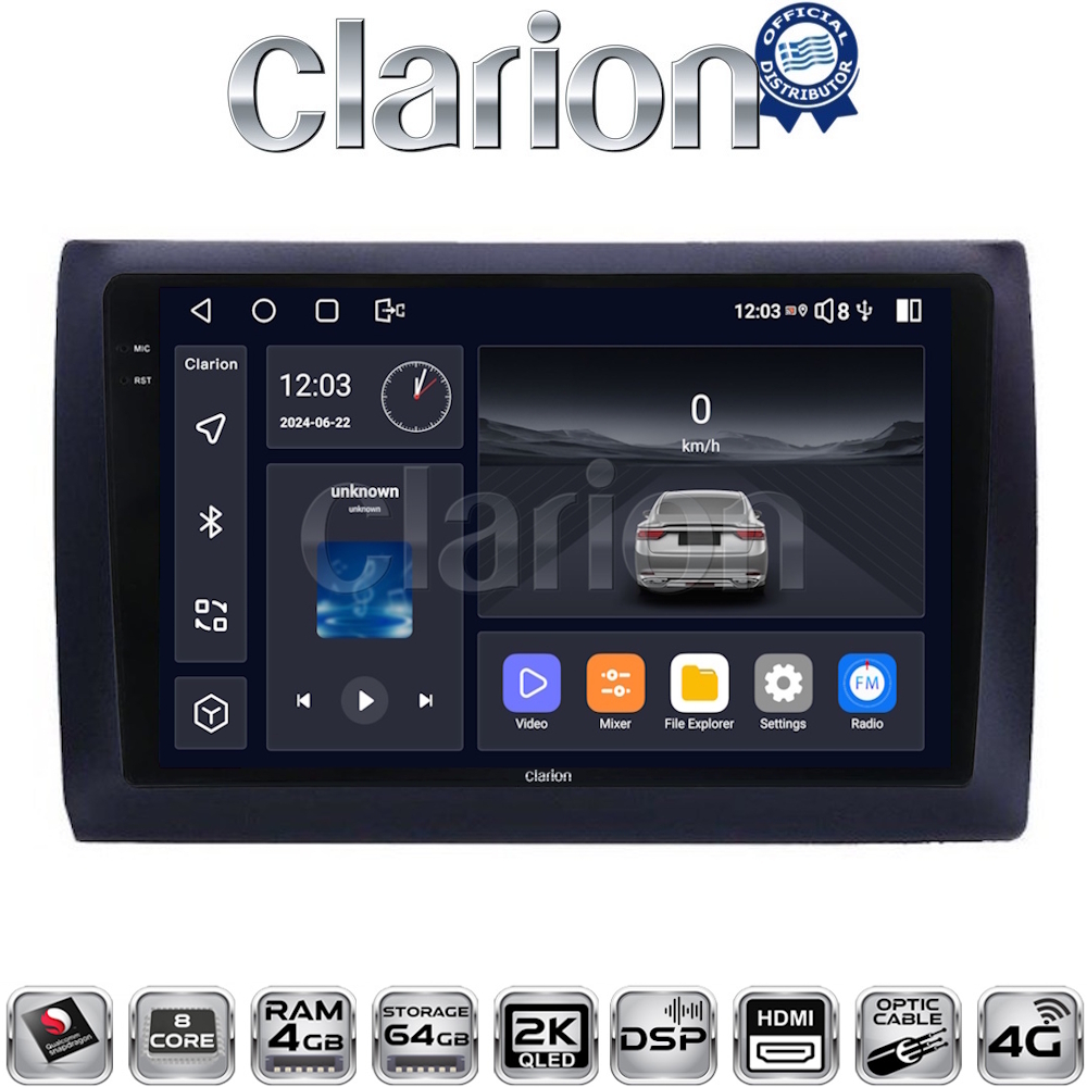 | Κωδικός | Το προϊόν αποτελείται από Clarion multimedia tablet GL700 (XD6125-464) 4+64GB, 9inch & την αντίστοιχη βάση μοντέλου οχήματος |
