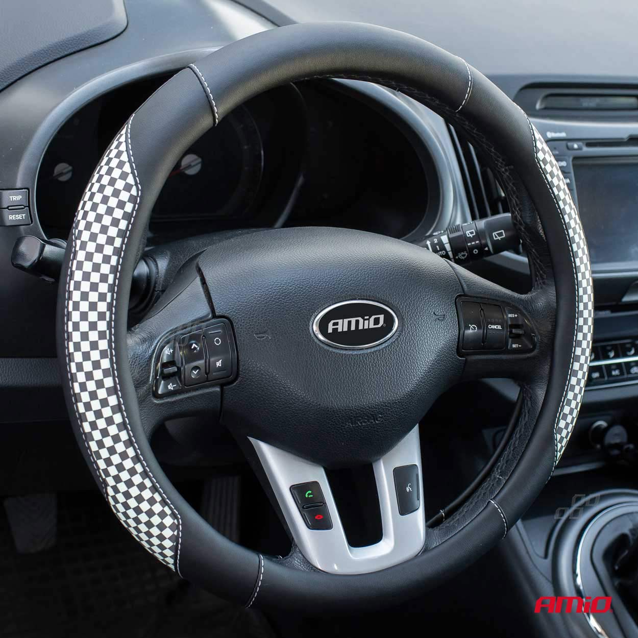 ΚΑΛΥΜΜΑ ΤΙΜΟΝΙΟΥ 37/39CM SWC-39-M ΜΑΥΡΟ ΜΕ ΛΕΥΚΗ ΡΑΦΗ ΔΕΡΜΑΤΙΝΗ ( ΚΑΡΟ ΣΗΜΑΙΑ) AMIO - 1 ΤΕΜ. ×