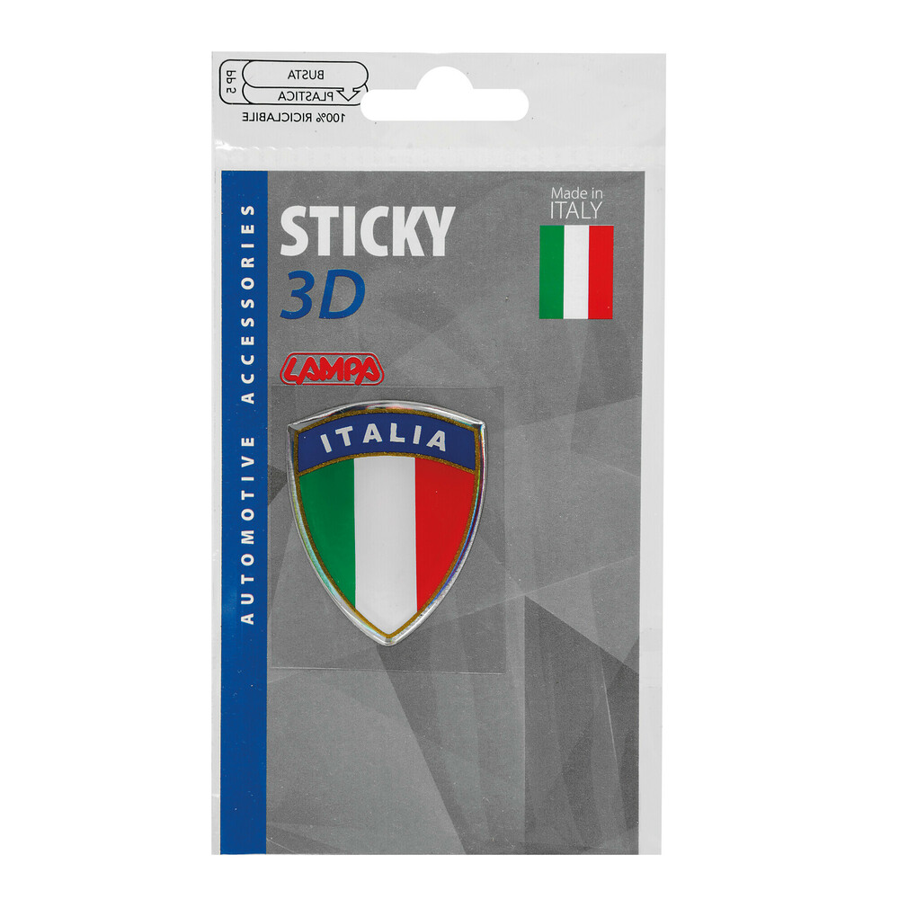 ΑΥΤΟΚΟΛΛΗΤΟ ΣΗΜΑ 3D ΣΗΜΑΙΑ ΙΤΑΛΙΑΣ ΕΜΒΛΗΜΑ 35x45mm LAMPA - 1 Τεμ. Αυτοκόλλητο σήμα με διάφανη ρητίνη ανάγλυφο. Ακριβείς λεπτομέρειες και έντονα χρώματα. Χάρη στα φίλτρα UV Protective δεν κιτρινίζει. Συσκευασία 1 τεμαχίου