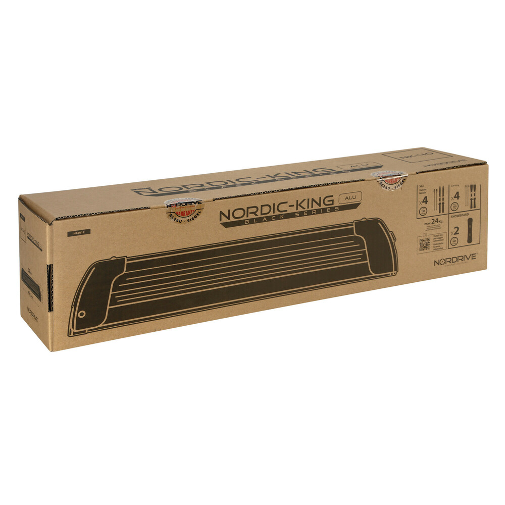 ΒΑΣΗ ΣΚΙ ΟΡΟΦΗΣ 4 ΖΕΥΓΑΡΙΑ ΣΚΙ/2 SNOWBOARD ΑΛΟΥΜΙΝΙΟΥ ΜΑΥΡΗ ΜΕ ΚΛΕΙΔΙ NORDIC-KING EVO NK-40 58cm Universal βάση για σκι οροφής με αντικλεπτικό σύστημα και κλειδί για 4 πέδιλα του σκι ή 2 σανίδες snow board, κατασκευασμένη από ελαφρύ και ανθεκτικό αλουμίνιο με επένδυση από αντιολισθητικό λάστιχο EPDM, το οποίο αντέχει σε χαμηλές θερμοκρασίες. Η Nordic-King EVO NK-40 είναι κατασκευασμένη από υλικά εξαιρετικής αντοχής στη θερμότητα, στο όζον και σε αντίξοες καιρικές συνθήκες, με εξαιρετική πρόσφυση και καλη συμπεριφορά σε πολικές συνθήκες και στην υγρασία. Πληροί όλες τις απαραίτητες προδιαγραφές ασφαλείας. ΕΦΑΡΜΟΓΗ Η βάση μπορεί να τοποθετηθεί: 1) Απευθείας πάνω σε μπάρες αυτοκινήτου με σύστημα T-track (περιλαμβάνεται στη συσκευασία). 2) Εξωτερικά με βίδες μέσω κλειστών βραχιόνων (max 57 Χ 60 mm) σε απλές σιδερένιες μπάρες οροφής αυτοκινήτου (περιλαμβάνεται στη συσκευασία). - Συνολικό μήκος: 57,5 cm. - Συνολικό ύψος: 12,5 cm (με κλειστό καπάκι). - Ύψος κάτω μέρους βάσης: 4 cm. - Ωφέλιμο μήκος βάσης: 44 cm. - Υλικό: Αλουμίνιο με EPDM επένδυση. - Χωρητικότητα: 4 ζευγάρια πέδιλα σκι ή 2 σανίδες snow board (4/2). - Περιλαμβάνει: Kit τοποθέτησης για μπάρες με υποδοχή T-track και για απλές μπάρες σιδήρου. - Συμβατή με: Quadra, In-Rail Steel, Rail Top, Alumia, In-Rail Alu, Rail Pro, Helio, Nowa, Yuro, Snap, Club, Kuma, Kargo, Kargo Plus, Whispbar μπάρες. ΣΗΜΕΙΩΣΗ: Για καλύτερη ασφάλεια και προστασία της οροφής του οχήματος από τυχόν φθορές ή ζημιές, υπάρχει δυνατότητα αύξησης του χάσματος (κενό) 38 mm μεταξύ της οροφής του αυτοκινήτου και της βάσης του σκι με πρόσθετη χρήση του Extension Kit Ν40050