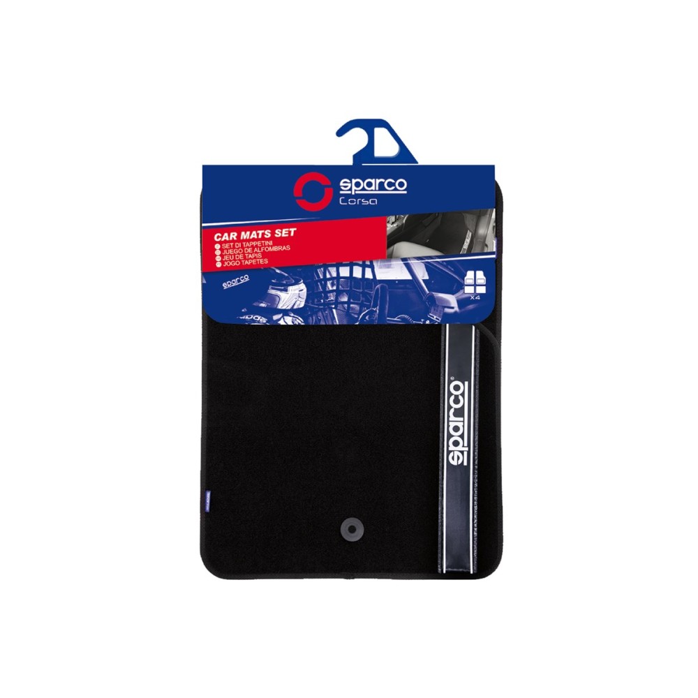 Μοκέτα Μαύρη με Μαύρη γραμμή 4τμχ Sparco
