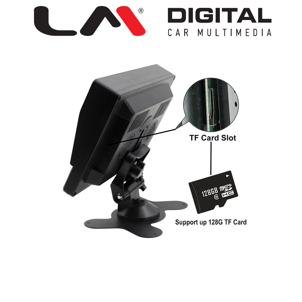 Μονιτορ 7 ιντσες για ταμπλω, Υποστηριζει σημα CVBS / AHD 720P / AHD 1080 P. Περιλαμβανει διαχωριστή εικόνας εως 4 καμερες. Συνδεση καμερων με 4 pin ή RCA. Αναλυση 1024x600 pix. 9-36V . Διαθέτει Τηλεχειριστηριο