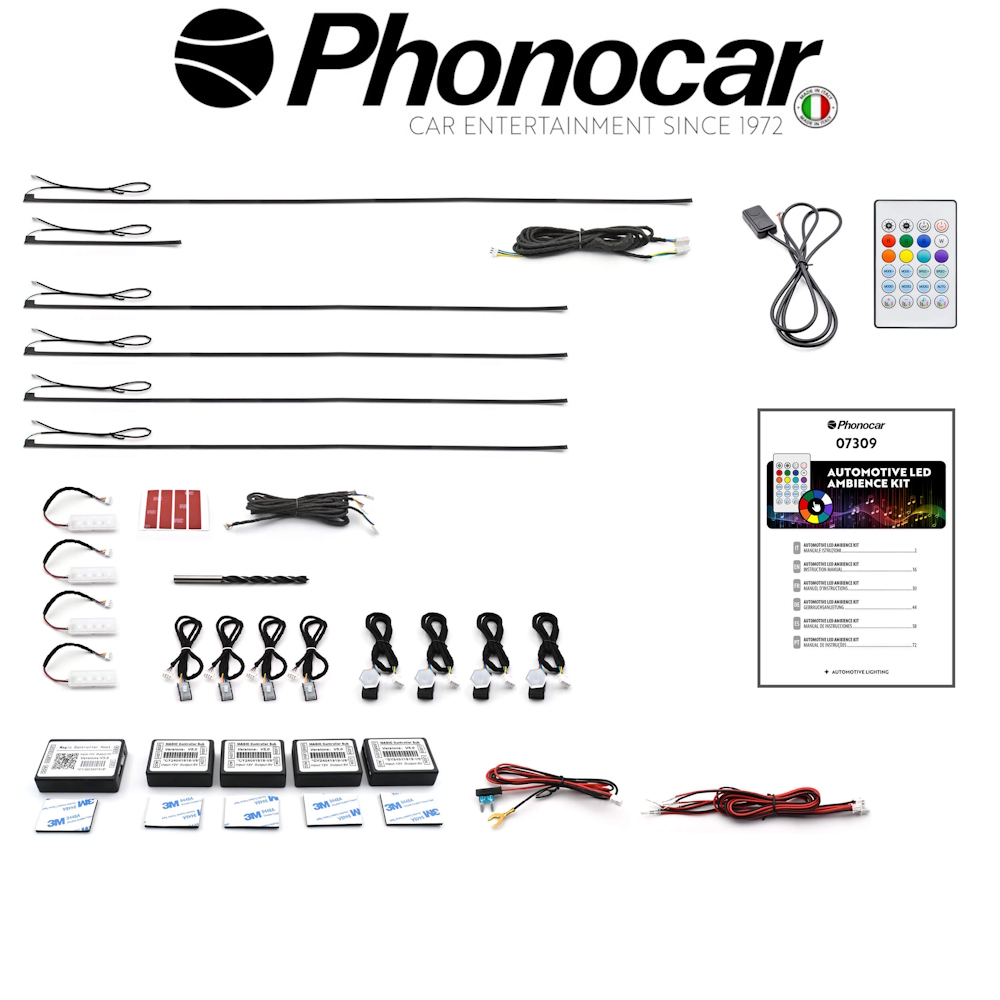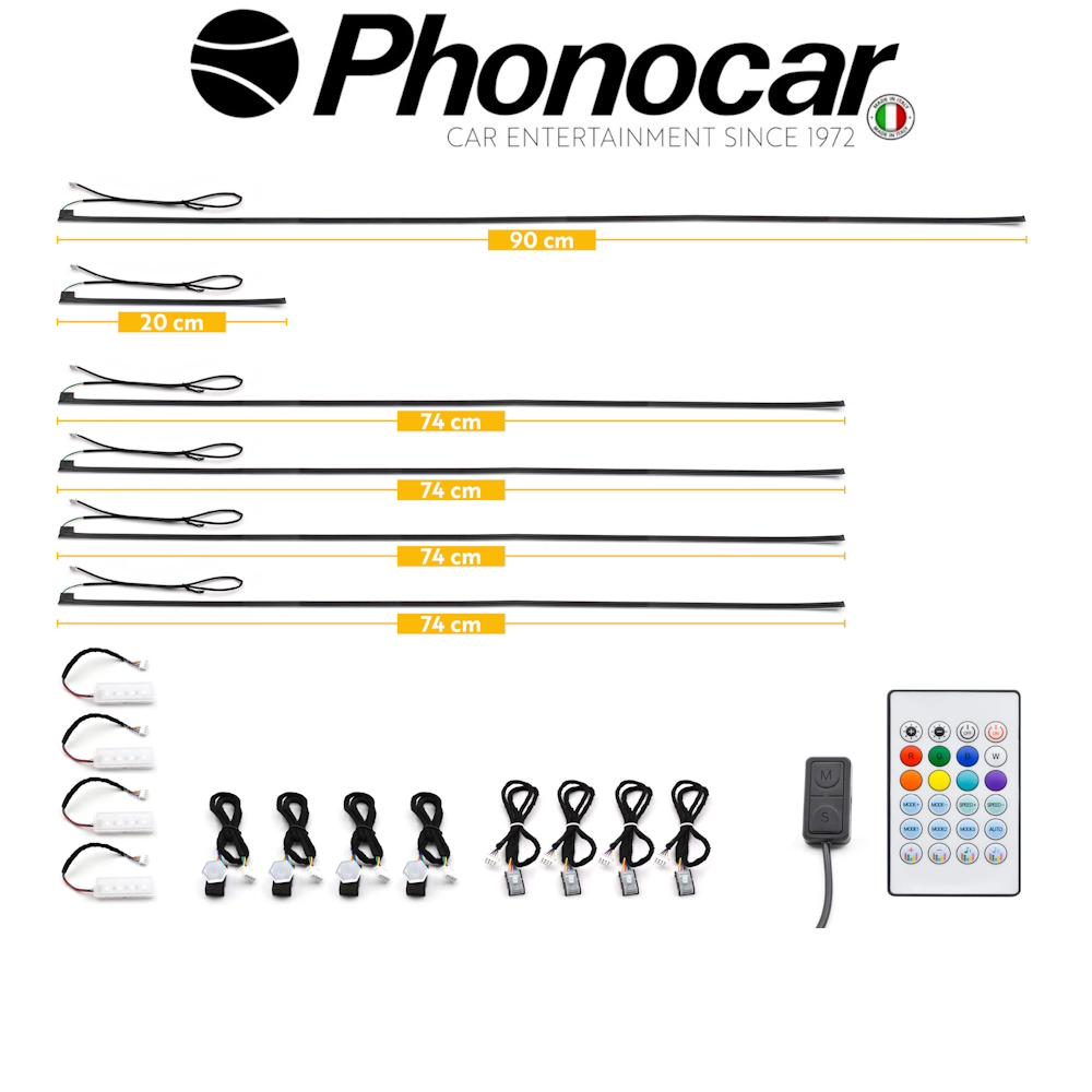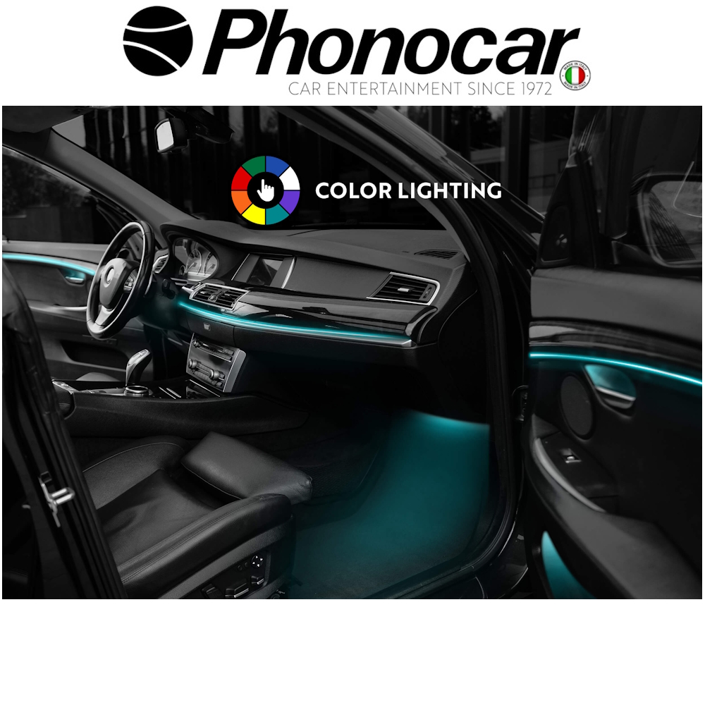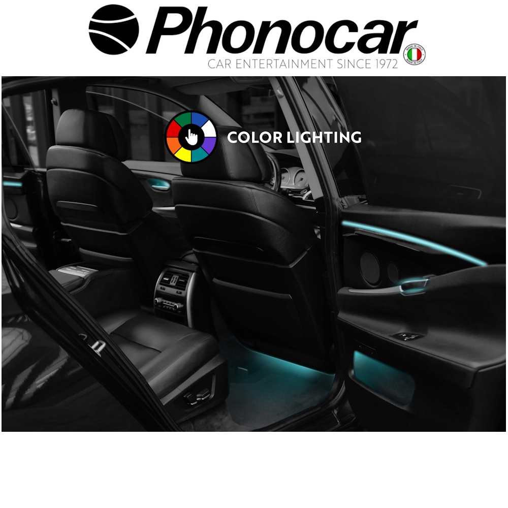Σετ Universal Φωτισμου Ambient για τον εσωτερικο χωρο, στη καμπίνα επιβατών του αυτοκινήτου, με πολλούς χρωματικούς συνδυασμούς και παιχνίδια φωτισμού.