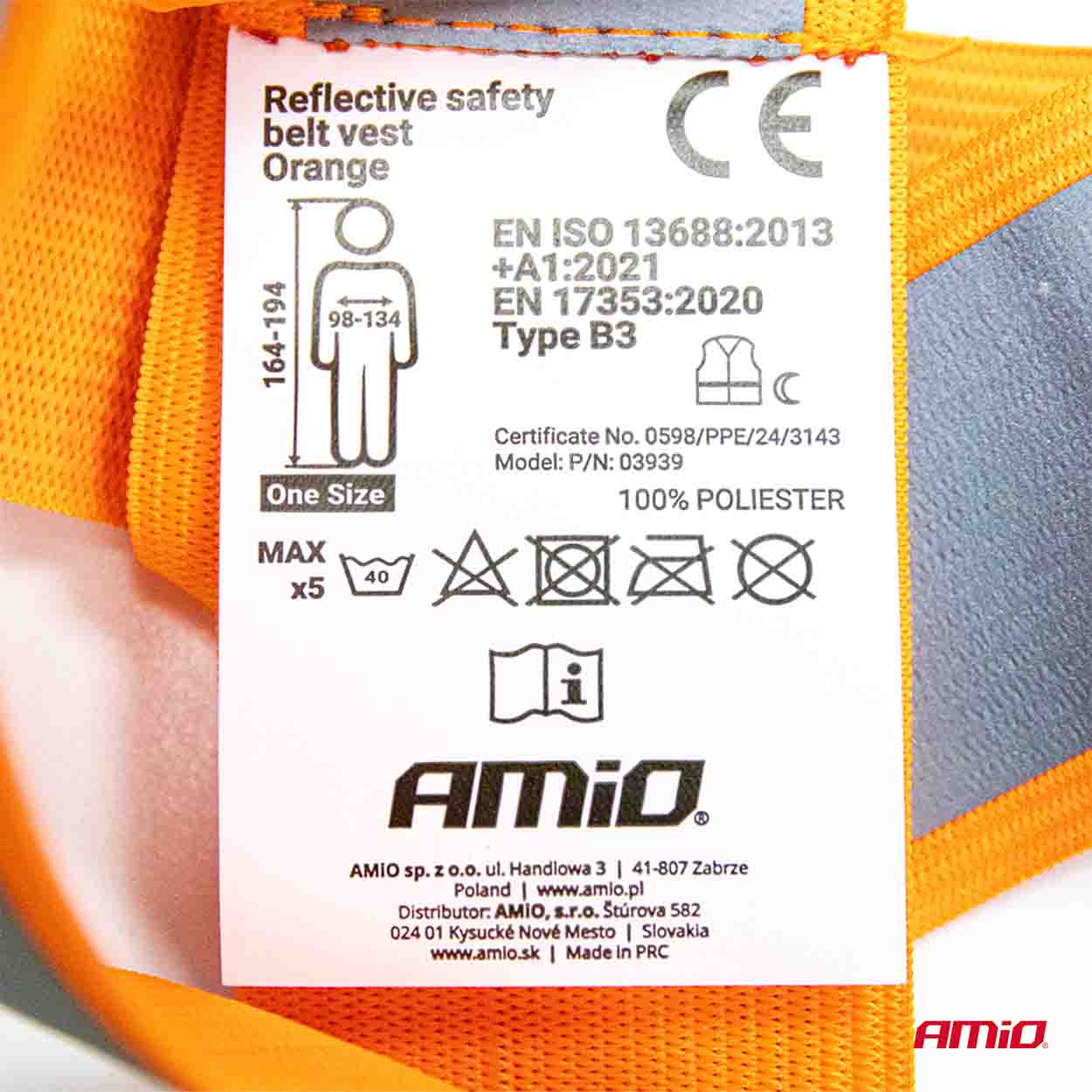 ΖΩΝΗ ΑΣΦΑΛΕΙΑΣ ΑΝΑΚΛΑΣΤΙΚΗ ΜΕ ΧΙΑΣΤΙ ΤΙΡΑΝΤΕΣ ΠΟΡΤΟΚΑΛΙ (ΦΩΣΦΟΡΙΖΕ/ΠΟΛΥΕΣΤΕΡΙΚΟ) AMIO - 1 ΤΕΜ. Υλικό υψηλής ποιότητας και έντονες ανακλαστικές ρίγες εξασφαλίζουν εξαιρετική ορατότητα από όλες τις πλευρές – είτε τρέχετε, κάνετε ποδήλατο είτε περπατάτε. -Μέγιστη ορατότητα – χάρη στις ισχυρές ανακλαστικές λωρίδες που αντανακλούν αποτελεσματικά το φως. -Universal μέγεθος – προσαρμόζεται σε διαφορετικά σχήματα σώματος χάρη στους ελαστικούς, ρυθμιζόμενους ιμάντες. -Ανθεκτικό υλικό – ανθεκτικό στην τριβή και εύκολο στον καθαρισμό, ιδανικό για εντατική χρήση. Πιστοποιητικά: EN ISO 13688:2013+A1:2021. EN17353:2020. Τύπος AB3. Συσκευασία 1 τεμαχίου