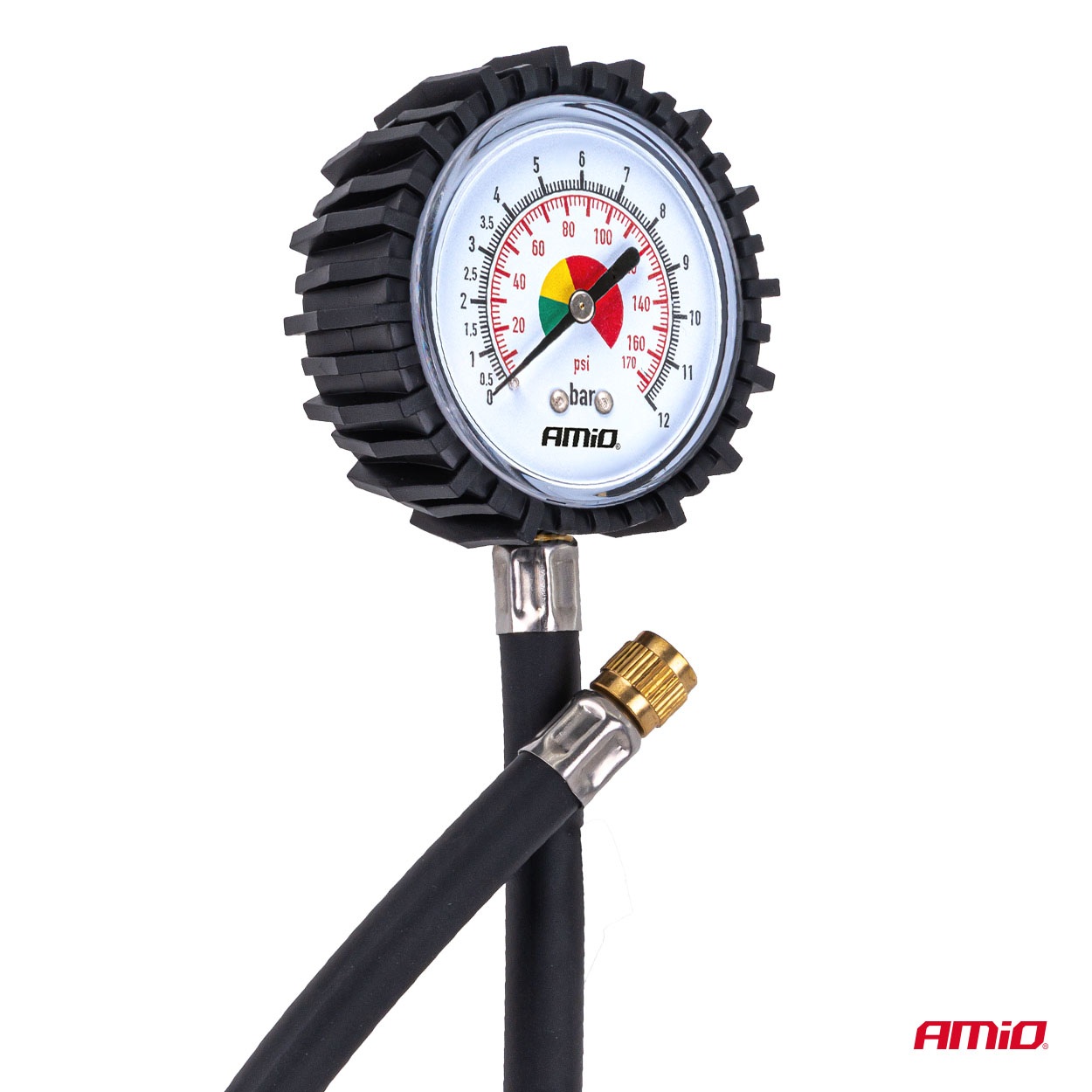 Amio - Επαγγελματικό μηχανικό μανόμετρο πίεσης ελαστικών 12 bar με εύκαμπτο σωλήνα 30cm Αναλογικό