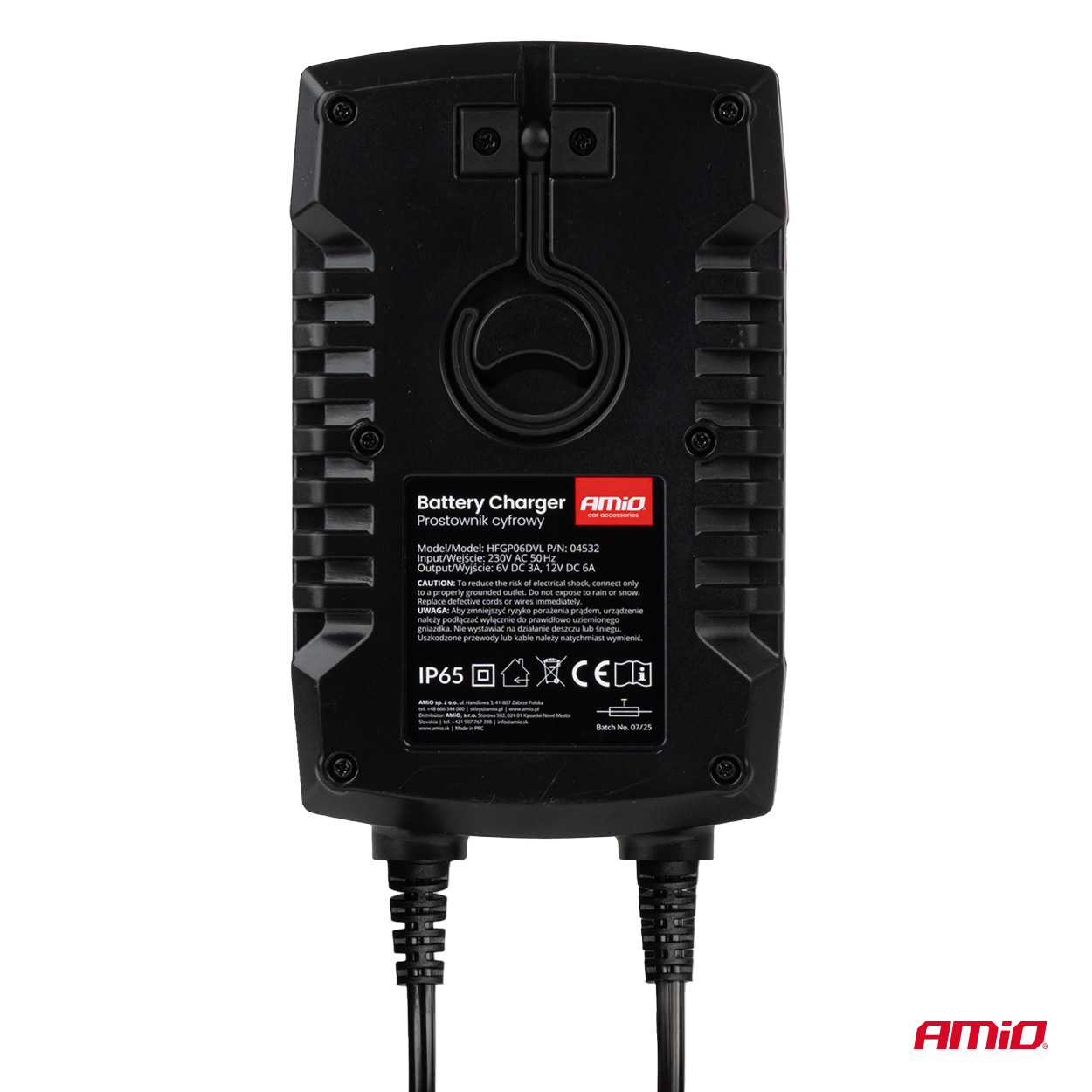 Amio - Φορτιστής Μπαταρίας Ψηφιακός PRO AGM GEL LiFePo4 (LFP) τάση λειτουργίας 6/12V ένταση ρεύματος 6A με γάντζο για Επιβατικά Αυτοκίνητα και Μοτοσυκλέτες - 1 τεμ. (04532/AM)