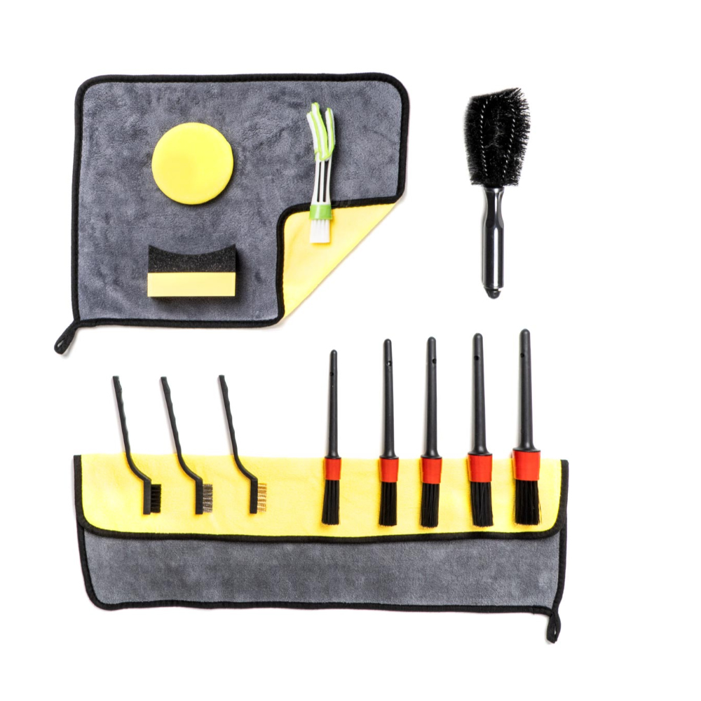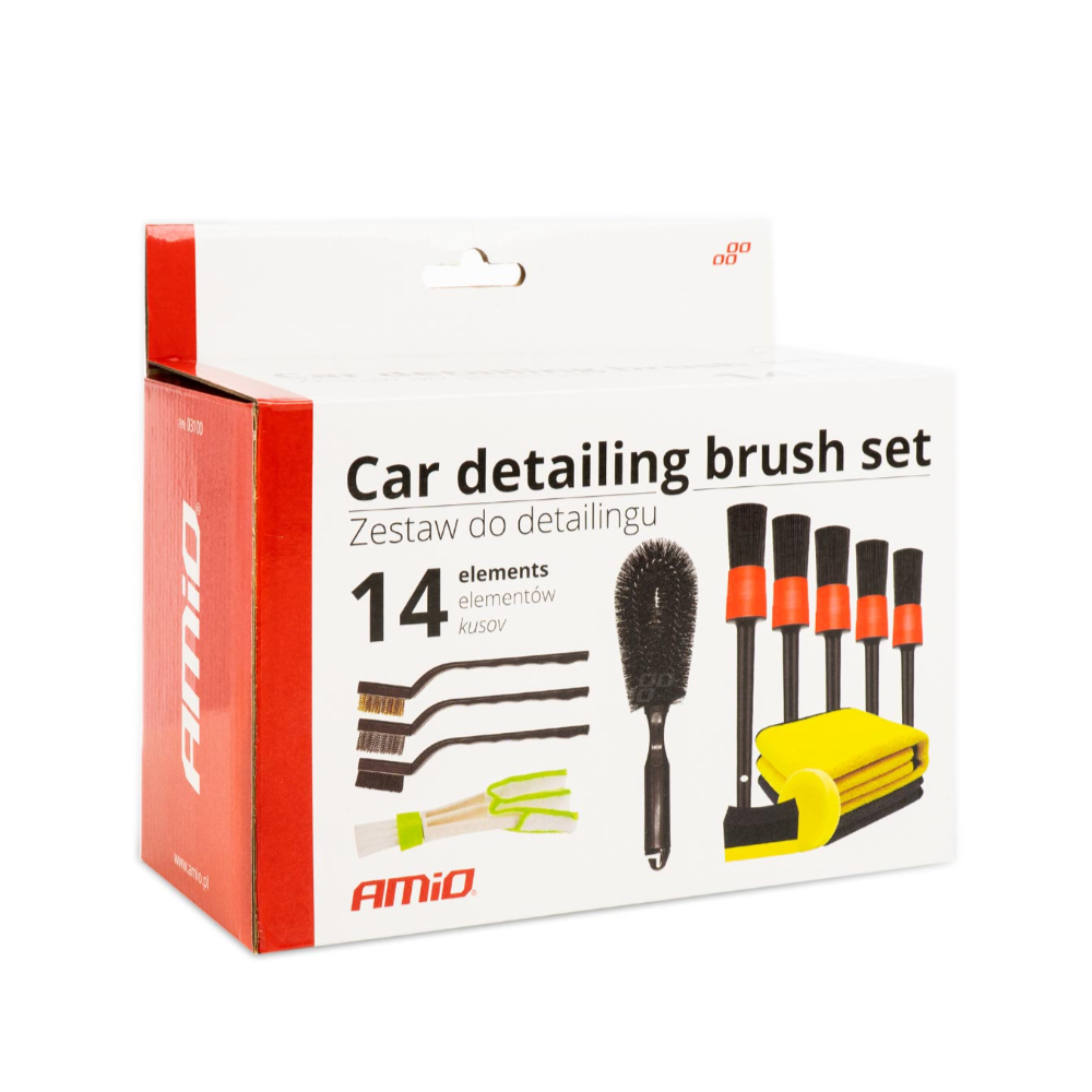 ΣΕΤ ΚΑΘΑΡΙΣΜΟΥ ΕΣΩΤΕΡΙΚΟΥ & ΕΞΩΤΕΡΙΚΟΥ ΑΥΤΟΚΙΝΗΤΟΥ ΒΟΥΡΤΣΑΚΙΑ/ΣΦΟΥΓΓΑΡΙΑ/ΠΑΝΑΚΙΑ ΑMiO - 14 TEM. Σετ καθαρισμού πανάκια / βουρτσάκια / σφουγγάρια για εσωτερικό και εξωτερικό καθαρισμό του αυτοκινήτου από την εταιρεία ΑMiO, πολωνικής προέλευσης. Το υψηλής ποιότητας κιτ καθαρισμού καλύπτει τις διάφορες ανάγκες καθαρισμού του αυτοκινήτου σας ή πολλούς τύπους οικιακού καθαρισμού. Το σετ περιέχει: -Βούρτσες λεπτομερειών - 5 τμχ. -Πινέλο για τον αεραγωγό. -Μικρά βουρτσάκια - 3 τεμ. -Βούρτσα στρογγυλή. -Πετσέτα μικροϊνών 40x30. -Πετσέτα μικροϊνών 60x30. -Απλικατέρ για κεριά. -Εφαρμογέας. Συσκευασία 14 τεμαχίων