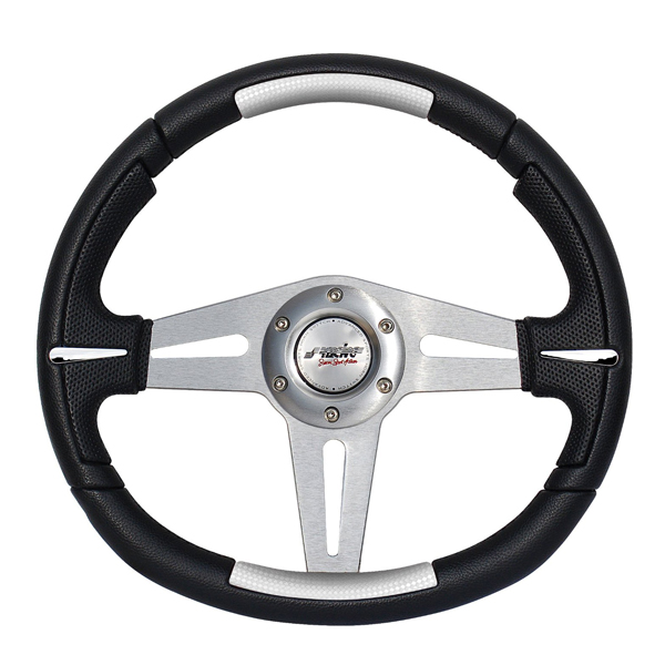 ΤΙΜΟΝΙ APOGEE ΙΝΟΧ 350mm Δερμάτινο τιμόνι μαύρο-inox δέρμα και ασημί σήμα Simoni Racing. Διάμετρος: 350 mm.