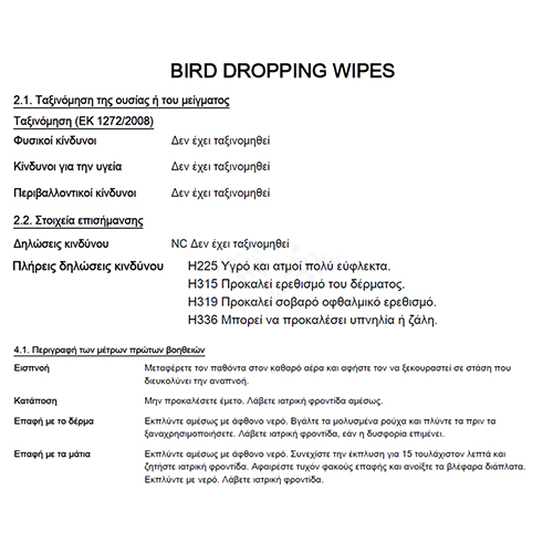 Τα περιττώματα των πουλιών είναι πολύ διαβρωτικά λόγω της ύπαρξης ουρικού οξέος. Επιτίθενται αμέσως στη βαφή & μέσα σε μερικές ώρες η βαφή αρχίζει να θαμπώνει & σε 1-2 ημέρες προκαλείται μόνιμη διάβρωση.