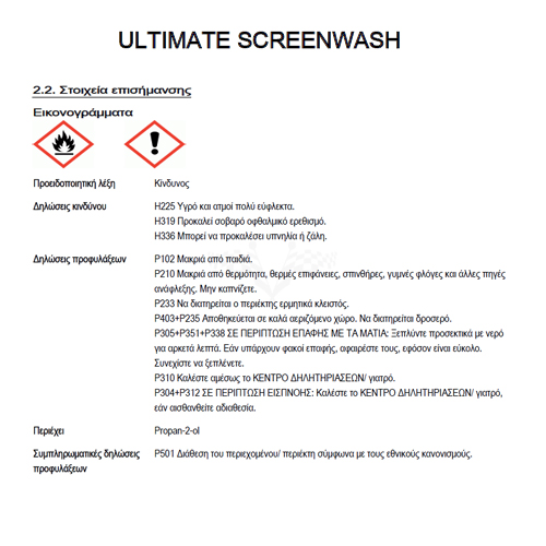 Υψηλής απόδοσης καθαριστικό & αντιπαγωτικό παρμπρίζ για να έχετε όλο τον χρόνο πεντακάθαρα κρύσταλλα σε όλες τις καιρικές συνθήκες. Υψηλής συμπύκνωσης φόρμουλα, με δραστικά συστατικά για 100% καθαρισμό .