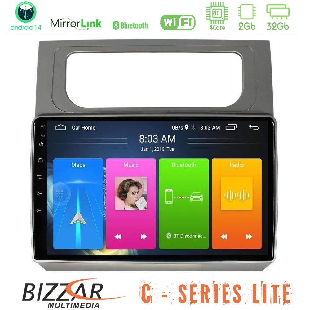 Bizzar C Series Lite 4Core Android14 2+32GB VW Touran 2011-2015 Navigation Multimedia Tablet 10