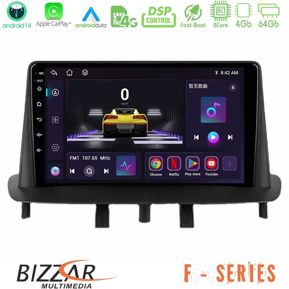 Bizzar F Series 8Core Android14 4+64GB Renault Megane 3 2009-2013 Navigation Multimedia Tablet 9 Με Carplay & Android Auto