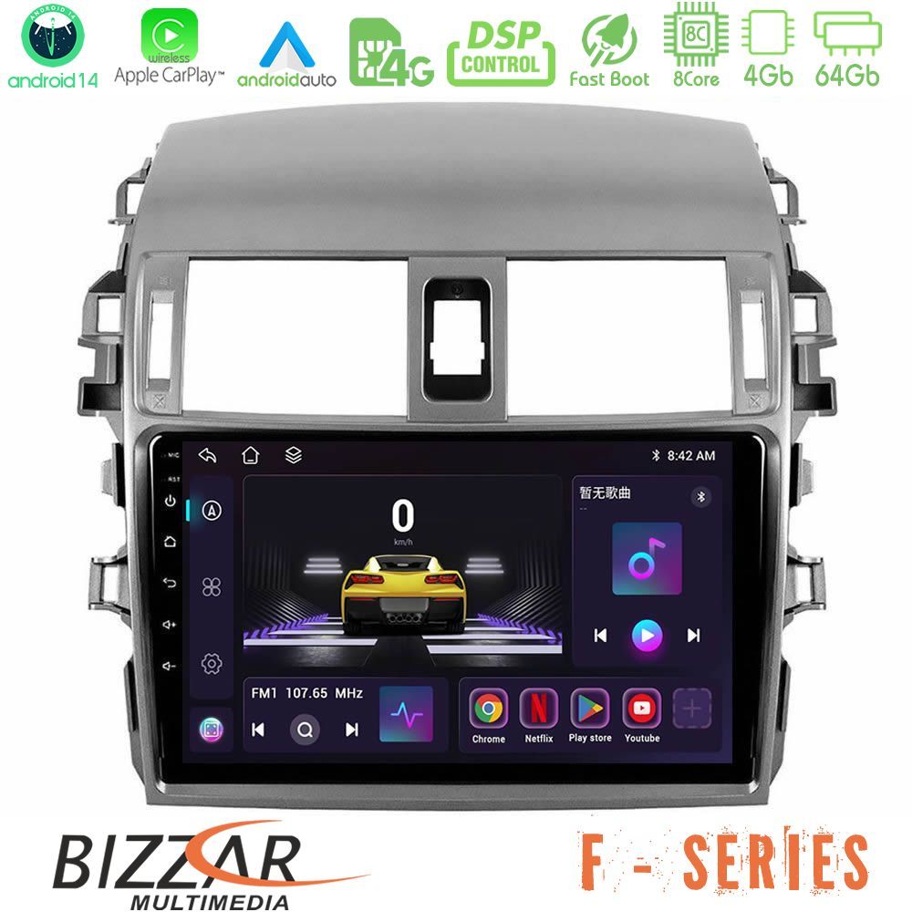 Bizzar F Series 8Core Android14 4+64GB Toyota Corolla 2008-2010 Navigation Multimedia Tablet 9 Με Carplay & Android Auto