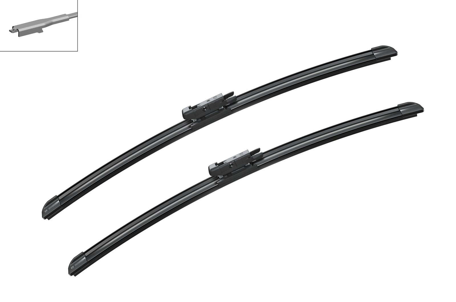 - Τα προσαρμοσμένα ελατηριωτά ελάσματα, κατασκευασμένα από χάλυβα Evodium, παρέχουν ομοιόμορφη επαφή με το παρμπρίζ και σταθερότητα καθαρισμού, ακόμη και σε υψηλές ταχύτητες.