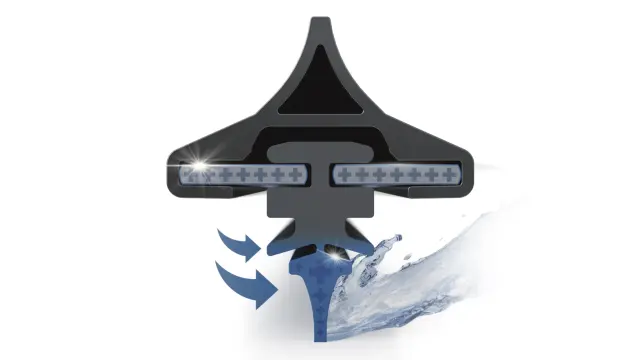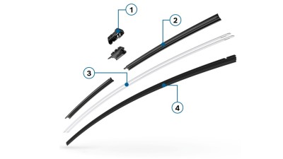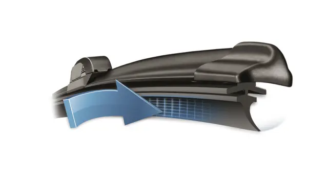 - Τα προσαρμοσμένα ελατηριωτά ελάσματα, κατασκευασμένα από χάλυβα Evodium, παρέχουν ομοιόμορφη επαφή με το παρμπρίζ και σταθερότητα καθαρισμού, ακόμη και σε υψηλές ταχύτητες.