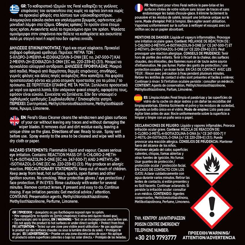 ✅ Χρησιμοποιήστε το με πανί μικροϊνών για τζάμια της Feral για τέλειο φινίρισμα.