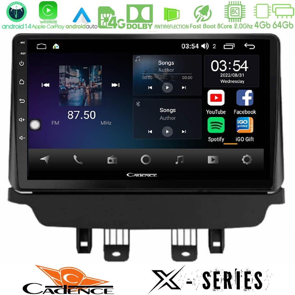 Cadence X Series Mazda 2 2014-2021 8core Android 14 4+64GB Navigation Multimedia Tablet 9 ×