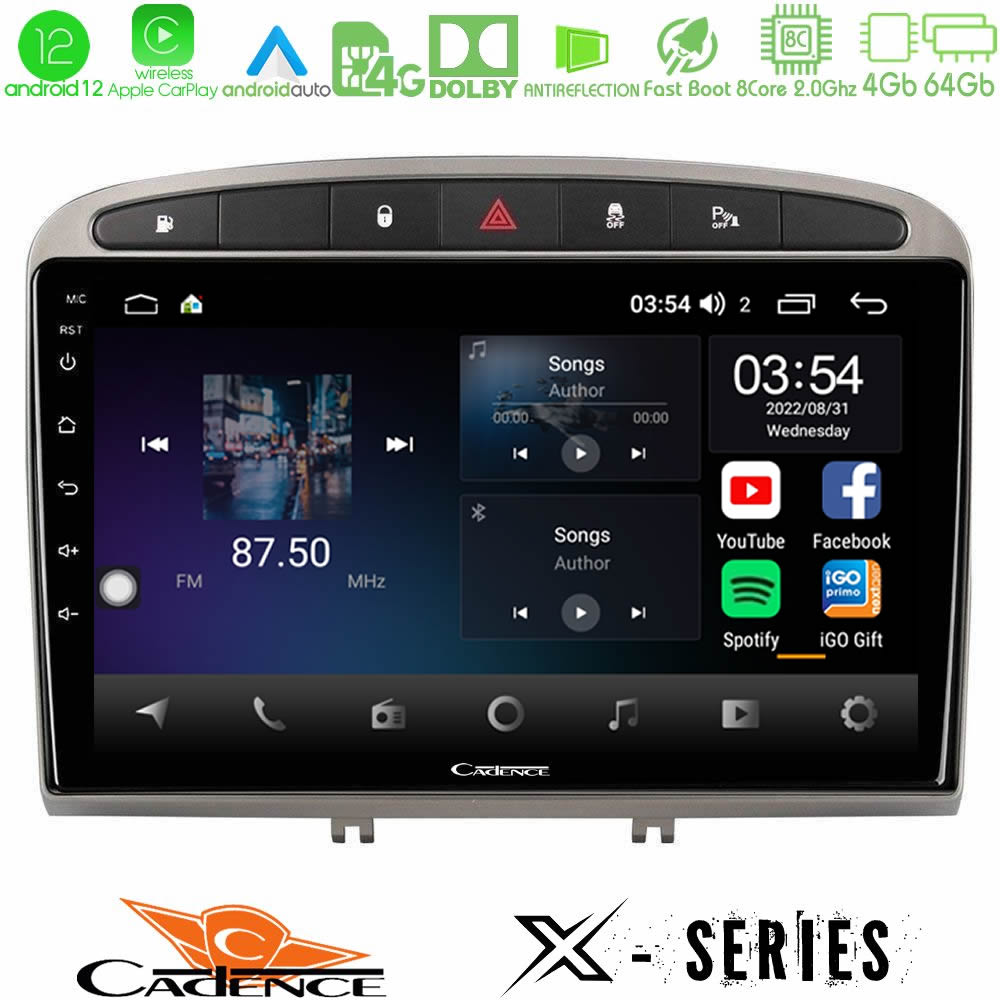 Cadence X Series Peugeot 308/RCZ 8core Android12 4+64GB Navigation Multimedia Tablet 9 (Ασημί Χρώμα)