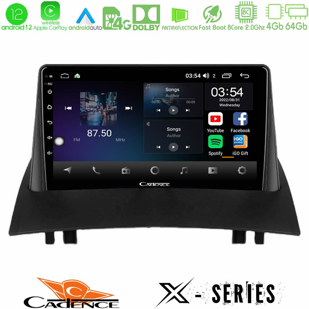 Cadence X Series Renault Megane 2 2002-2008 8Core Android12 4+64GB Navigation Multimedia Tablet 9