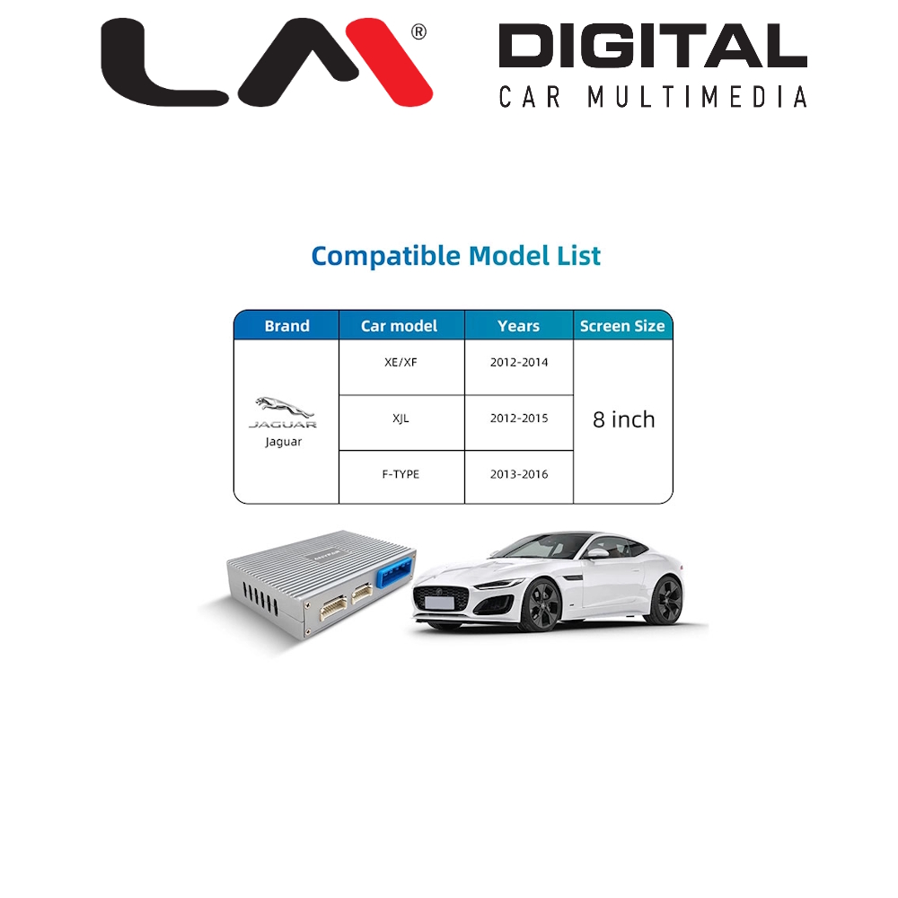 | Συμβατή για μοντέλα | Για οχήματα με Bosch system & οθόνη 8″ Landrover Evoque 2011 > 2016 Landrover Range Rover 2011 > 2017 Landrover Discovery 4 2011 > 2016 Landrover Freelander 2 2011 > 2015 Jaguar XE 2012 > 2016 Jaguar XF 2012 > 2016 Jaguar XJL 2011 > 2016 Jaguar F - Type 2012 > 2016 Jaguar F - Pace 2015 > 2016 |