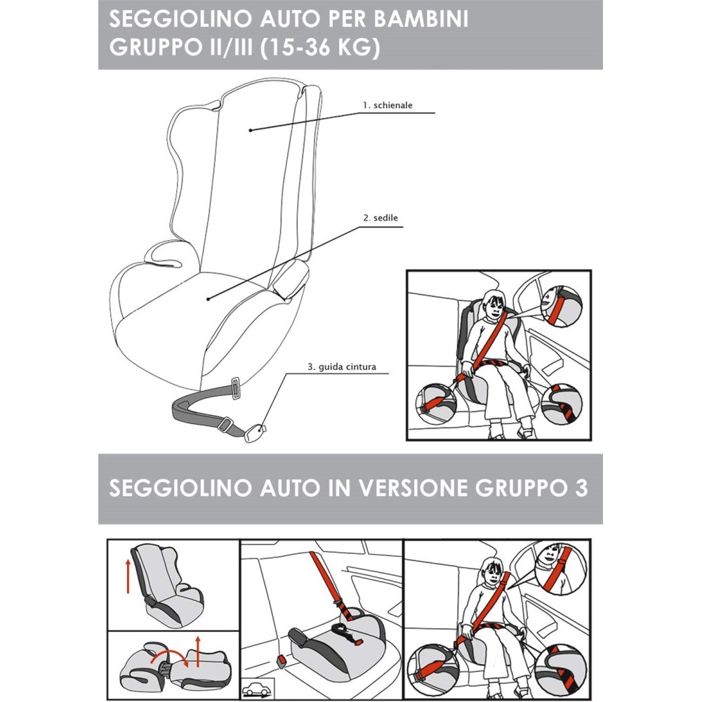 Το γενικό σύστημα ασφάλισης είναι κατάλληλο για όλα τα αυτοκίνητα, εξοπλισμένο με ζώνες ασφαλείας 3 σημείων, ενώ αφαιρώντας την πλάτη γίνεται ενισχυτικό κάθισμα αυτοκινήτου