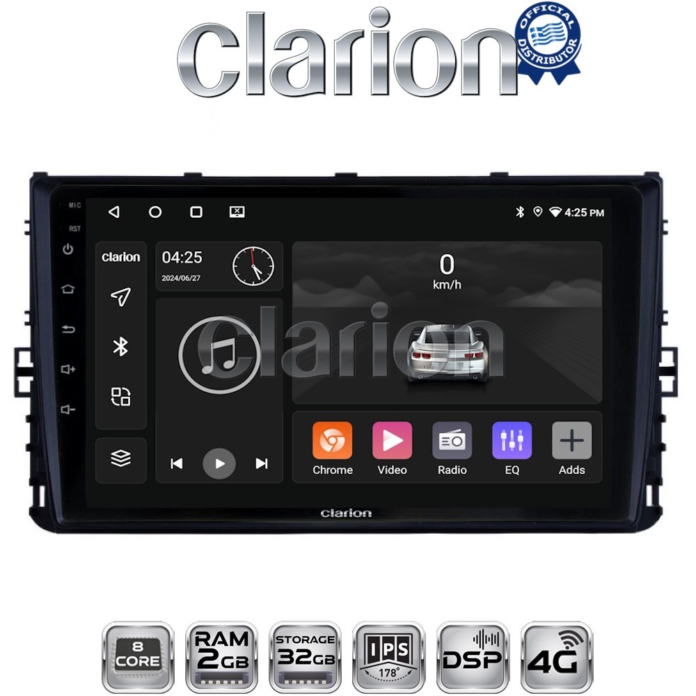 | Κωδικός | Το προϊόν αποτελείται από Clarion multimedia tablet GL700 (XD8581-2325) 2+32GB, 9inch & την αντίστοιχη βάση μοντέλου οχήματος |