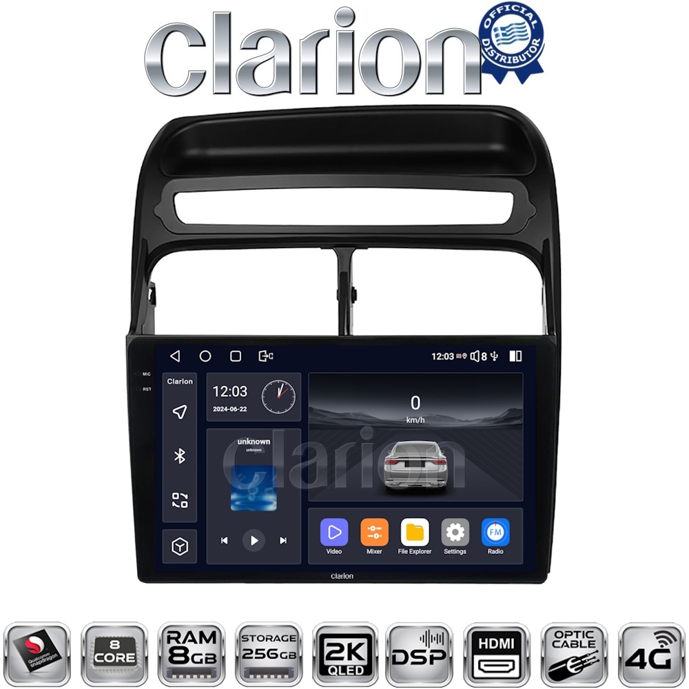| Κωδικός | Το προϊόν αποτελείται από Clarion multimedia tablet GL700 (XD6125-8256) 8+256GB, 9inch & την αντίστοιχη βάση μοντέλου οχήματος |