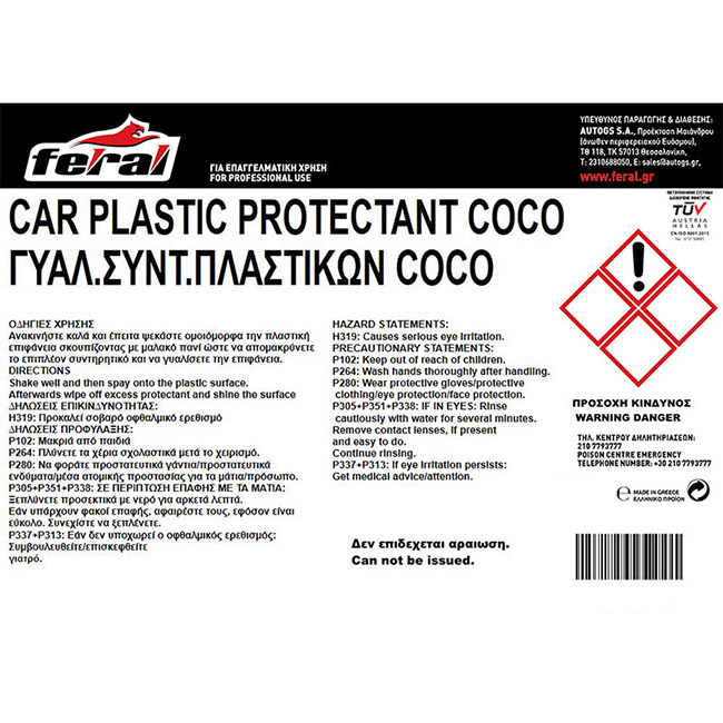 Γυαλιστικό Και Συντηρητικό Γαλάκτωμα Πλαστικών Coco Feral 4lt 1 Τεμάχιο ×