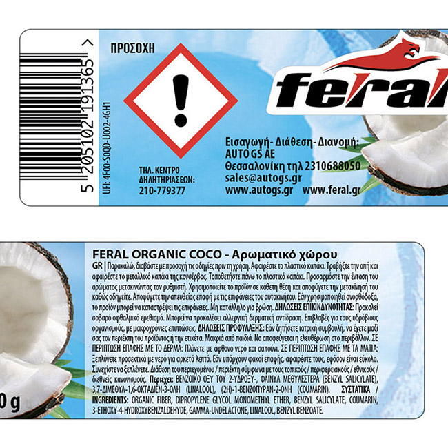 - Αρωματικό Αυτοκινήτου Κρεμαστό Feral Fruity Collection Coconut