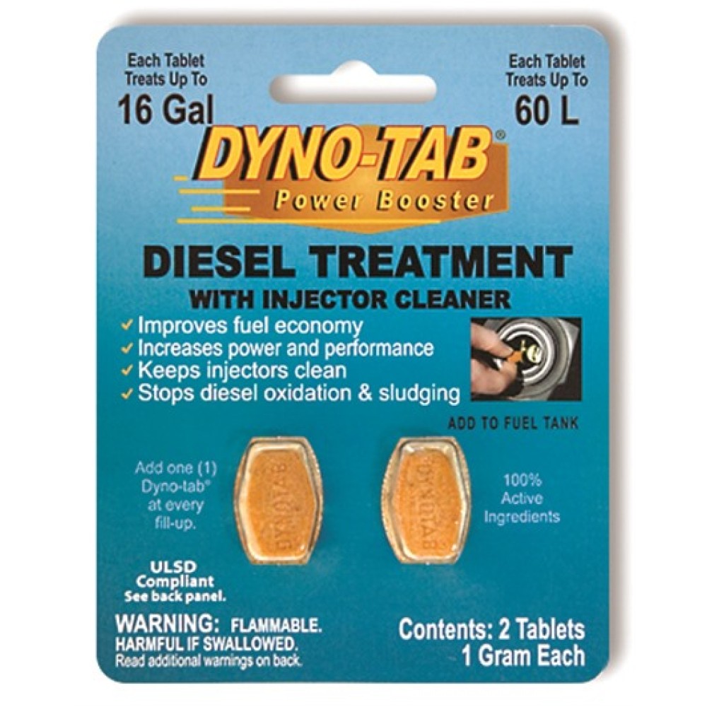 Το Dyno-tab® φροντίδα πετρελαίου μπεκ έχει σχεδιαστεί ειδικά για τις μοναδικές ιδιότητες των μηχανών πετρελαίου και συστήματα καυσίμου. Εκτός από την αύξηση των διανυθέντων χιλιομέτρων και τη βελτίωση της απόδοσης του κινητήρα διατηρεί τα μπεκ ψεκασμού καθαρά και αποτρέπει την οξείδωση του πετρελαίου και τη συγκέντρωση υπολειμμάτων Το Dyno-tab® Diesel Treatment με καθαριστικό ψεκασμού συμμορφώνεται με τους ομοσπονδιακούς νόμους σχετικά με τις απαιτήσεις χαμηλού θείου στο πετρέλαιο κίνησης. Για χρήση σε μηχανοκίνητα οχήματα και άλλες εφαρμογές ντίζελ όπως γεννήτριες και αντλίες. Περιέχει 2 ταμπλέτες 1 γραμ (μία ανά 60 λίτρα).