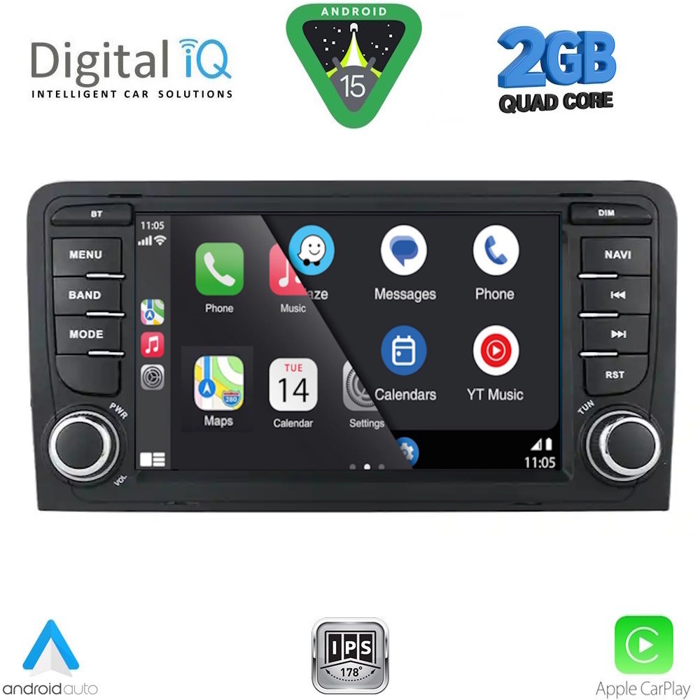 MULTIMEDIA OEM for AUDI A3 mod. 2003-2012 ANDROID 15 | Fast Loading 8sec CPU: CORTEX A100 - 1.45Ghz | Quad Core A7 RAM DDR3: 2GB | NAND FLASH: 32GB SUPPORTS STEERING WHEEL COMMANDS BOSE AMPLIFIER with CANBUS