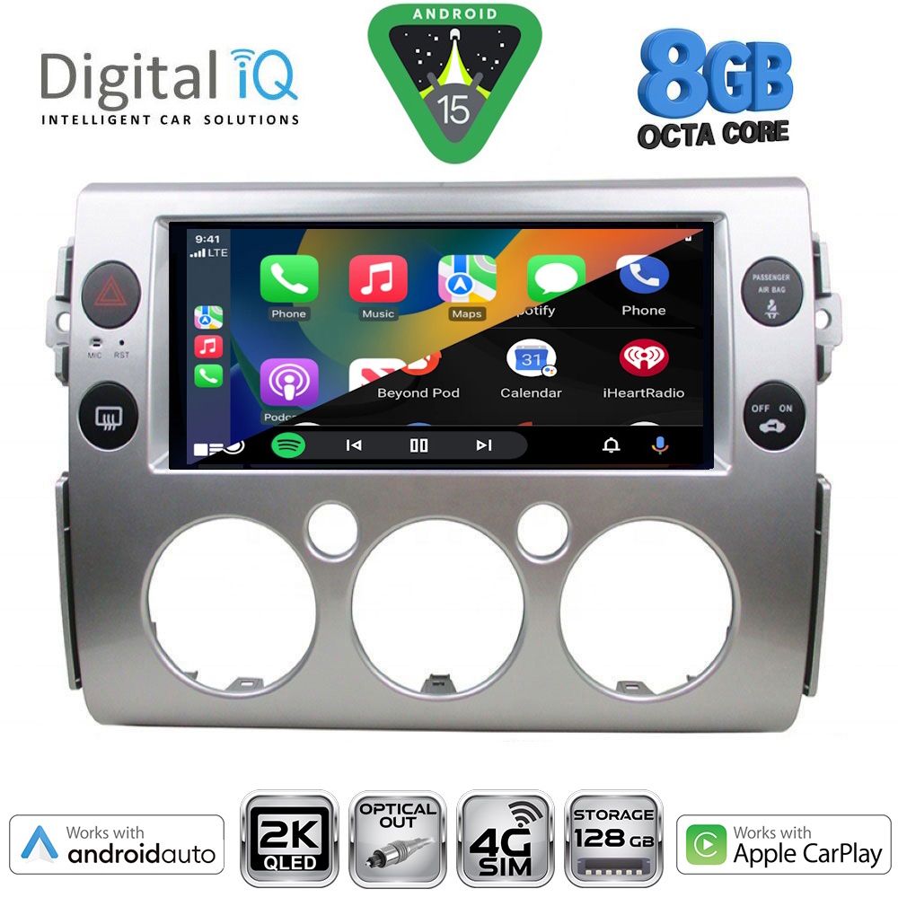 MULTIMEDIA TABLET for TOYOTA FJ CRUISER mod. 2007-2013 ANDROID 15 | Ultra Fast Loading 2sec CPU : B200 CORTEX A53 | 64BIT | OCTA CORE | 2.5Ghz RAM : 8GB DDR4 | INTERNAL STORAGE : 128GB NAND FLASH SUPPORTS STEERING WHEEL COMMANDS