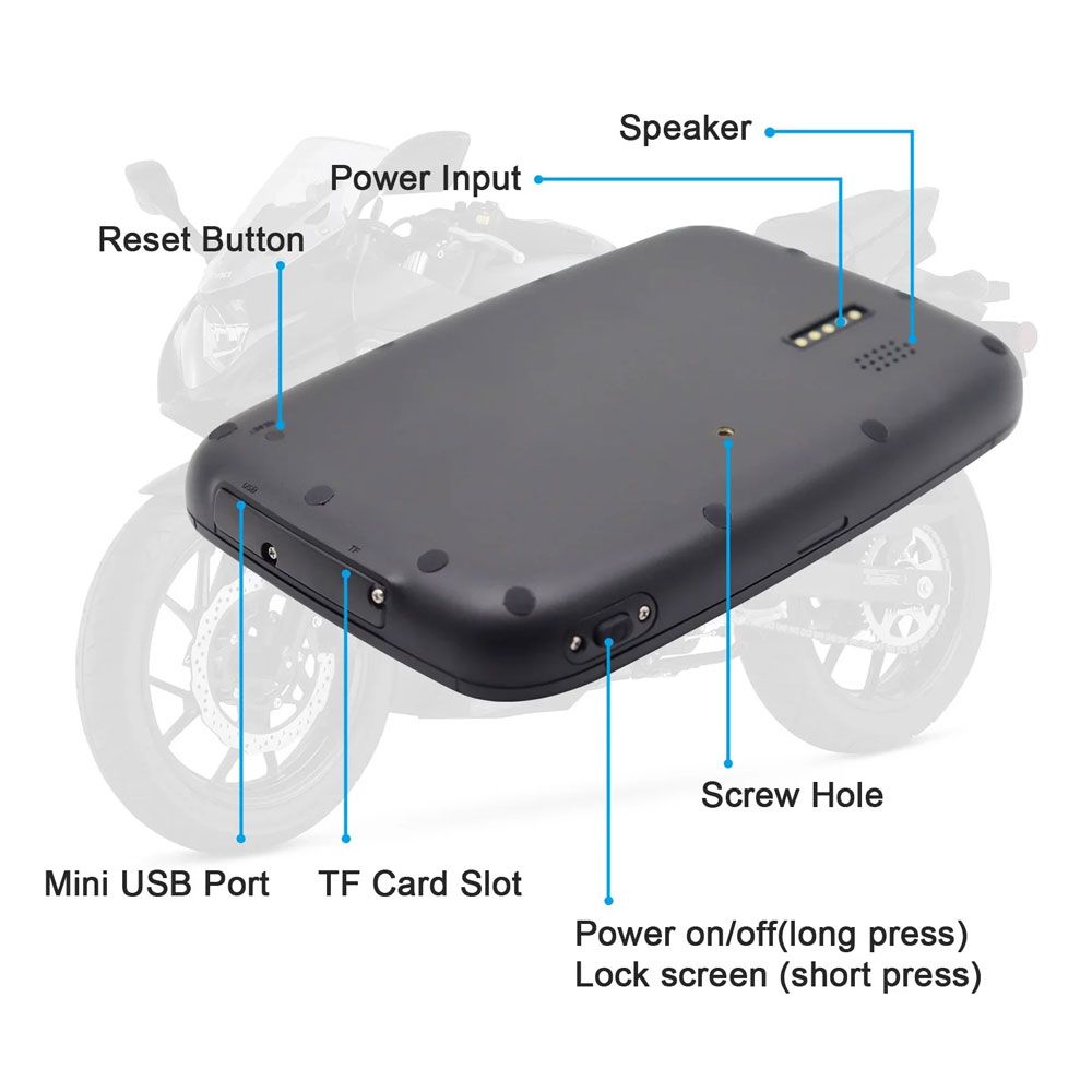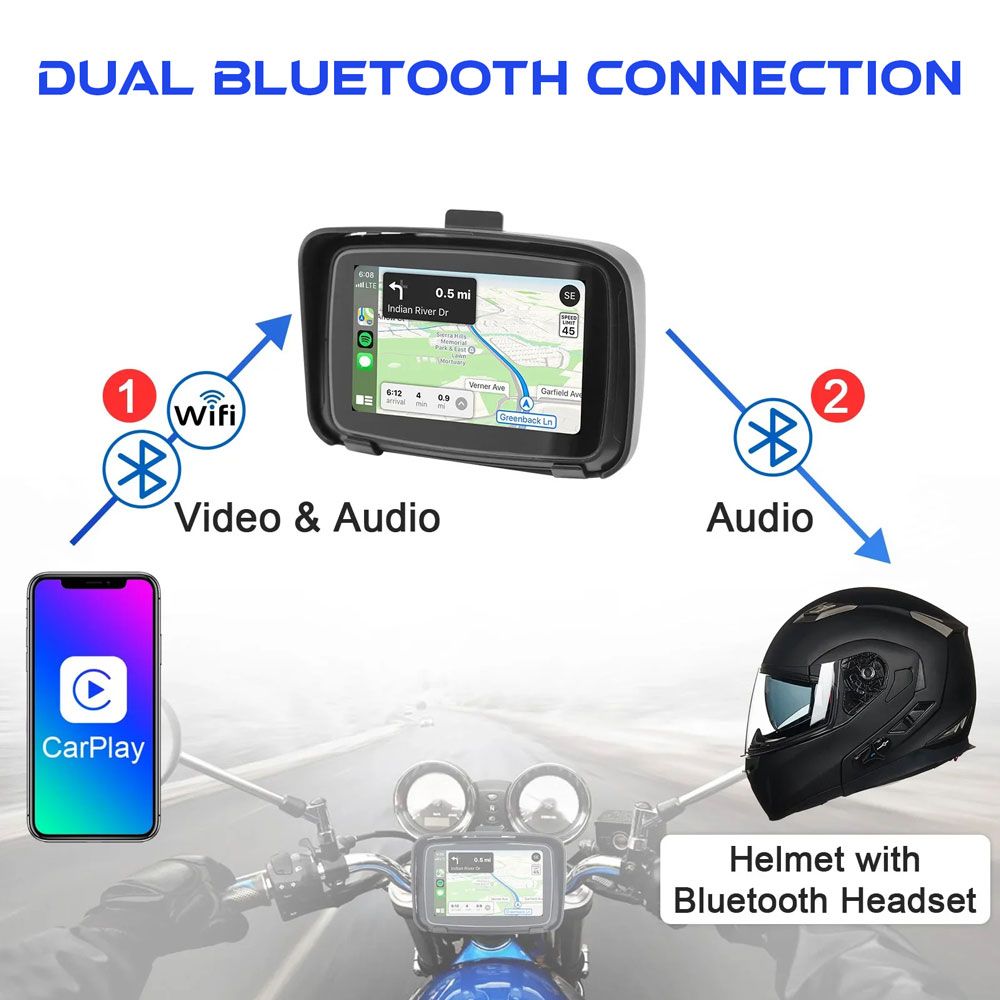 5" MOTORCYCLE WATERPROOF IPX7, APPLE CARPLAY, ANDROID AUTO, NAVIGATOR *Dimensions : 100 x 155mm