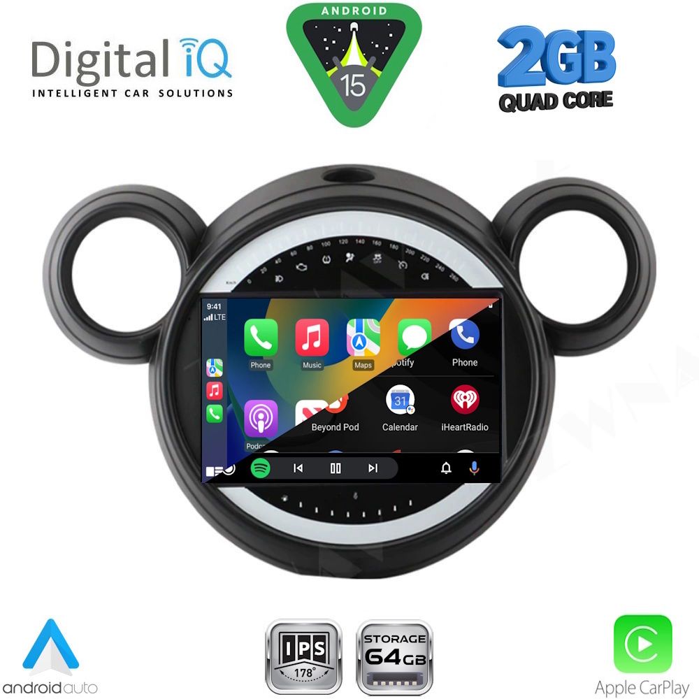 MULTIMEDIA TABLET for MINI COUNTRYMAN (R60) mod. 2010-2016 – PACEMAN (R61) mod. 2013-2016 ANDROID 15 | Fast Loading 8sec CPU : A133 | CORTEX A53 | QUAD CORE | 1.6GHz RAM: 2GB DDR3 | NAND FLASH : 64GB