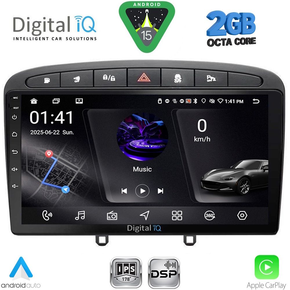 DIGITAL IQ RSF 4513BL_CPA (9inc) MULTIMEDIA TABLET for PEUGEOT 308 mod.2007-2012 - RCZ mod.2009-2015 (BLACK) ×