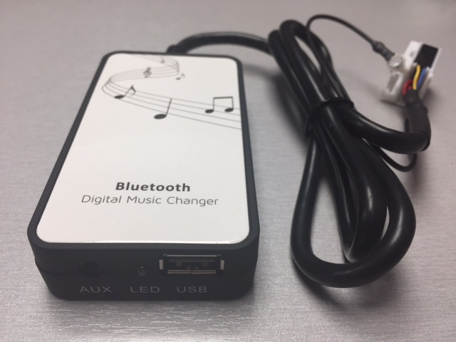 Digital music changer offers BT, USB/SD card, 3.5mm jack input AUX audio interface to selected vehicles OEM CD changer port.