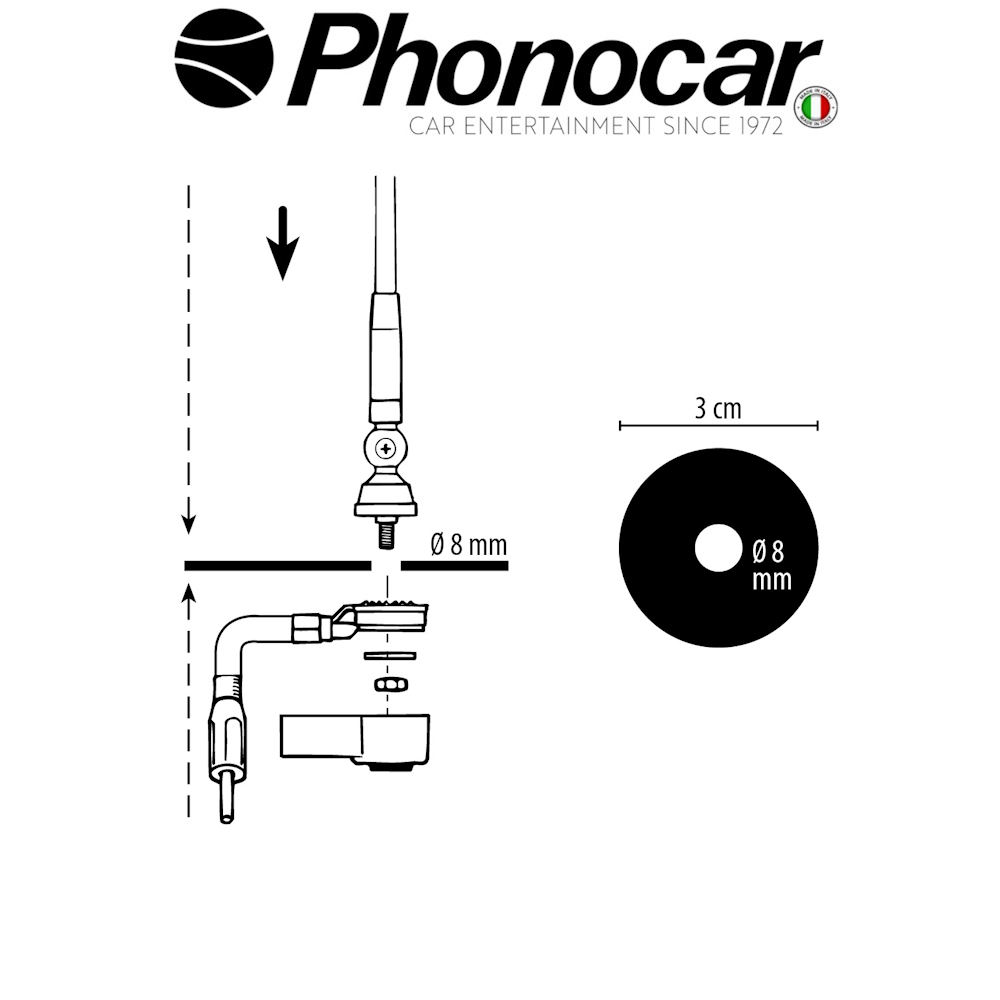Οπή για στερέωση στην οροφή του αυτοκινήτου 8 mm