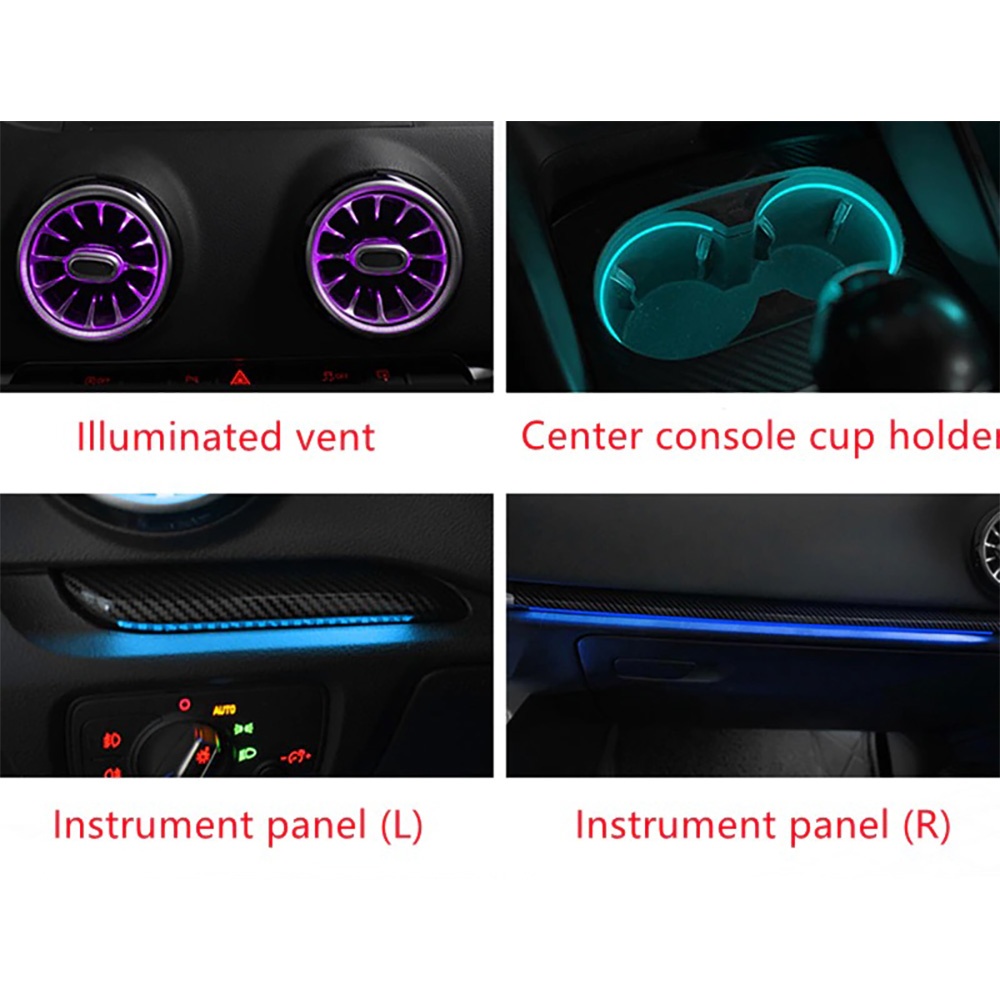 • Standard 25pcs Dynamic Lights (4 door handle lights, 4 door outline lights, 4 door storage box lights, 4 footwell lights, 2 water cups, 3 central control, 4 air outlets).