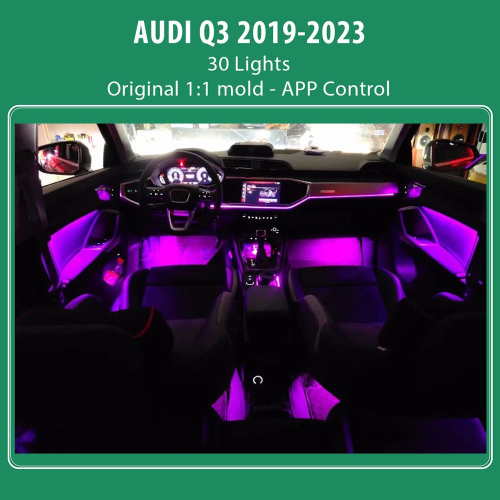 - 30 lights (4 door handle lights, 4 door contour lights, 4 door surface lighting, 4 door storage box lights, 4 footwell lights, 2 saddle lights, 2 water cups, and 3 center console lights)